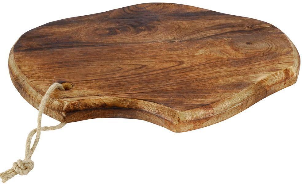 Kuchenna deska wykonana z egzotycznego drewna mango. Posiada wyjątkowy, postarzany wygląd i nieregularny kształt. Sprawdzi się do krojenia oraz serwowania.