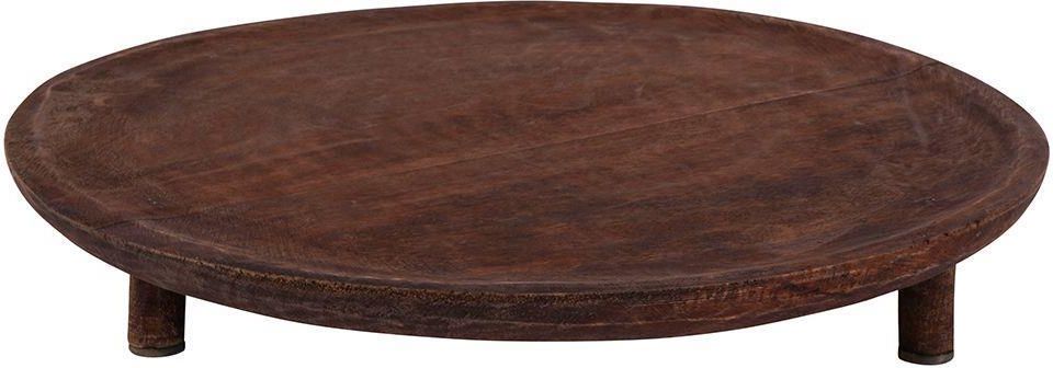Okrągła deska do krojenia i serwowania. Wykonana z egzotycznego drewna mangowca. Świetnie prezentuje się na stole, konstrukcja na podwyższeniu ułatwia zgarnianie produktów.