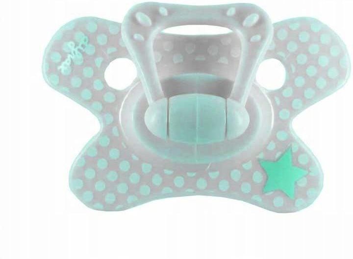 Smoczek silikonowy ortodontyczny Difrax 6M+ Smoczek Difrax to idealne rozwiązanie dla dzieci powyżej 6. miesiąca życia. Specjalnie zaprojektowany kształt przypomina sutek mamy, dzięki czemu jest łatwo akceptowany przez maluszki i skutecznie zaspokaja naturalną potrzebę ssania. Najważniejsze zalety smoczka Difrax: - Naturalny kształt – końcówka smoczka przypomina sutek mamy, co wspiera instynkt ssania i zapewnia dziecku poczucie bezpieczeństwa. - Tarcza w kształcie motylka – nie zasłania noska, umożliwia swobodne oddychanie i minimalizuje ryzyko podrażnień. - Otwory wentylacyjne – zapewniają stały dopływ powietrza, chroniąc delikatną skórę dziecka przed zaczerwienieniami. - Wsparcie dla rozwoju jamy ustnej – ortodontyczny kształt stymuluje prawidłowy rozwój podniebienia, języka i mięśni szczęki. - Bezpieczny materiał – smoczek wykonany w 100% z wysokiej jakości silikonu, wolny od bisfenolu A. Dane techniczne: - Wiek: 6M+ - Materiał: 100% silikon - Bez BPA - Spełnia normę europejską EN-1400 Łatwy w czyszczeniu i użytkowaniu: Smoczek Difrax można w prosty sposób utrzymać w czystości, co gwarantuje higienę i bezpieczeństwo użytkowania. Difrax to marka znana z innowacyjnych rozwiązań dla najmłodszych – wybierz smoczek, który zadba o spokojny sen i prawidłowy rozwój Twojego maluszka!