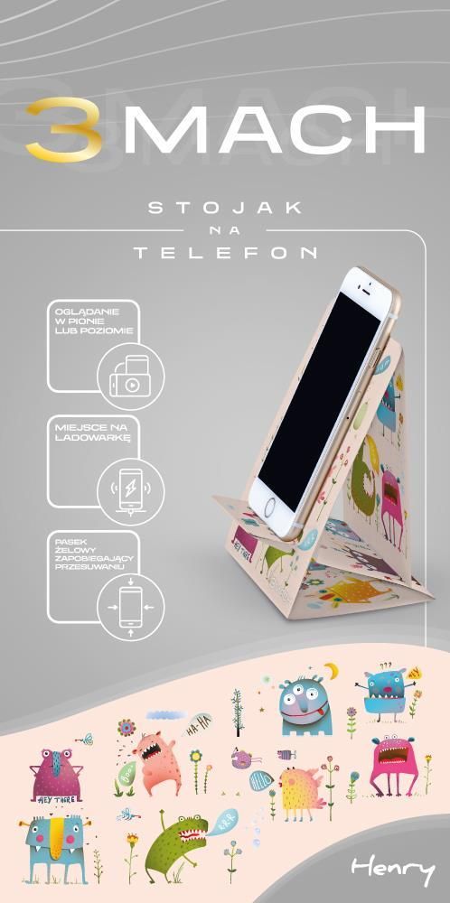 Stojak na telefon Potwory 3MACH Stojak na telefon Potwory 3MACH Stojak na telefon wykonany ze sztywnego kartonu. Telefon można stawiać w pionie i poziomie. Stojak pokryt matową folią soft touch zapobiegającą przesuwaniu się telefonu. Dodatkowo w zestawie znajduje się pasek żywiczny podtrzymujący …