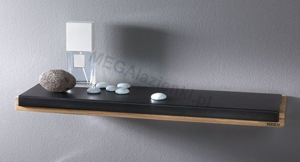 - Dłuższy bok: 60 cm - Typ: drewniana, inna - Montaż: zawieszana - Kolor: czarny, drewno