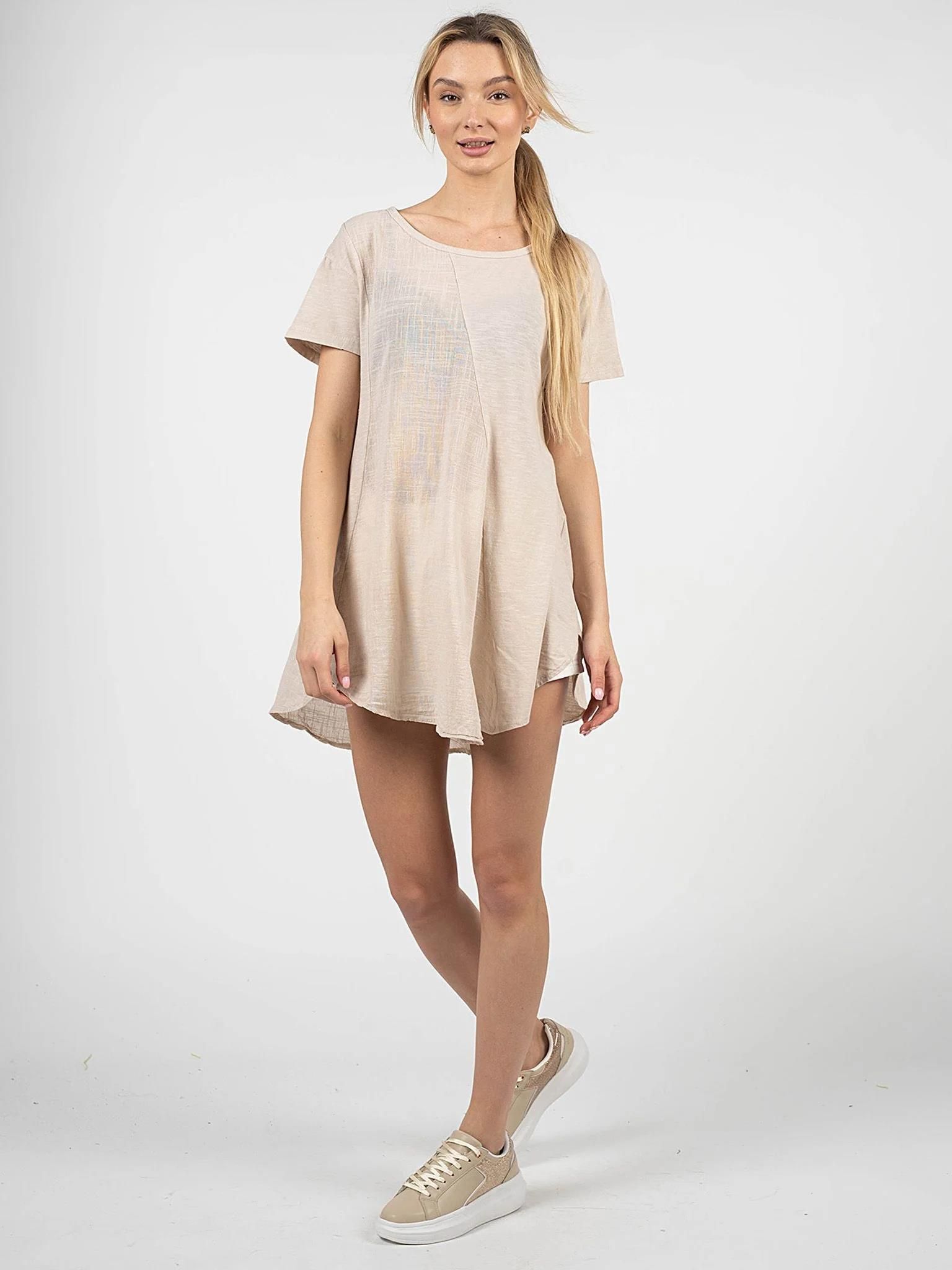 Prosty, dłuższy fason Z okrągłym dekoltem Wykonany z połączenia dwóch wysokogatunkowych tkanin Wyprodukowano we Włoszech