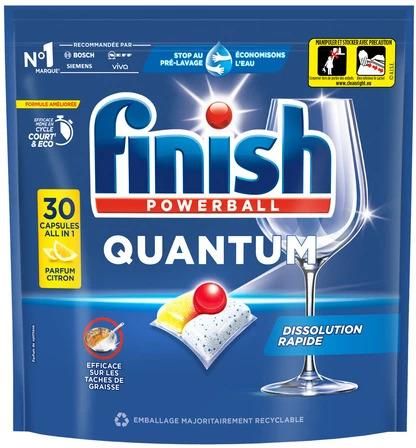 Finish quantum kapsułki do zmywarki 33 sztuki citron Finish Quantum Lemon to cytrynowe kapsułki do zmywarki, które łączą skuteczność z wygodą, zapewniając perfekcyjną czystość i olśniewający blask naczyń już przy pierwszym użyciu. Dzięki technologii trzech komór oraz innowacyjnej formule Powerball, kapsułki skutecznie usuwają tłuszcz, przypalone resztki i trudne plamy – nawet w krótkich cyklach i przy niższych temperaturach, co pozwala oszczędzać energię bez kompromisów w efekcie. Zestaw zawiera 33 kapsułki, które nie tylko czyszczą, ale też chronią szkło przed korozją i zapobiegają osadzaniu się kamienia w zmywarce. Dzięki temu naczynia zachowują swój blask na długo, a urządzenie działa sprawniej. Samorozpuszczalna folia eliminuje konieczność rozpakowywania – wystarczy umieścić kapsułkę w dozowniku, a resztą zajmie się zaawansowana technologia. Finish Quantum Lemon to wybór dla tych, którzy cenią sobie niezawodność, świeżość cytrynowego zapachu i komfort codziennego użytkowania. Idealne rozwiązanie dla każdej zmywarki i każdego domu.