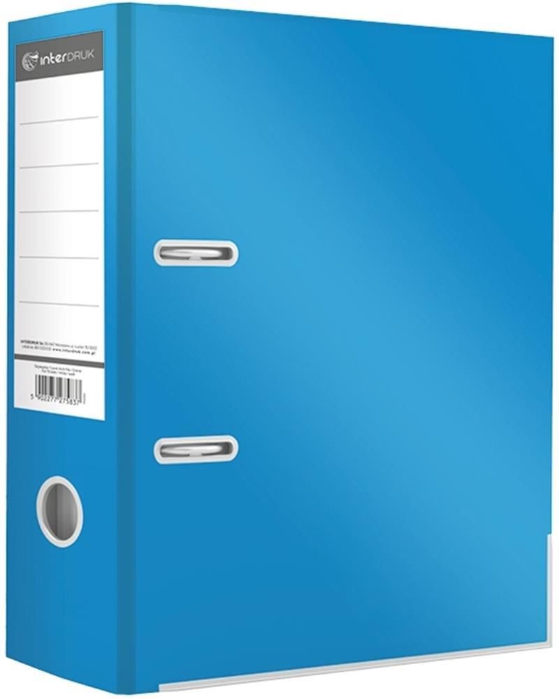 - format A4 - okładka z kredy zabezpieczona folią błysk - w środku papierowa wyklejka - wyposażony w 2 ringi oraz dźwignię z dociskaczem - wzmocniony otwór na palec - dolne krawędzie usztywnione metalową szyną - wymienna etykieta grzebietowa - szerokość grzebietu 75mm