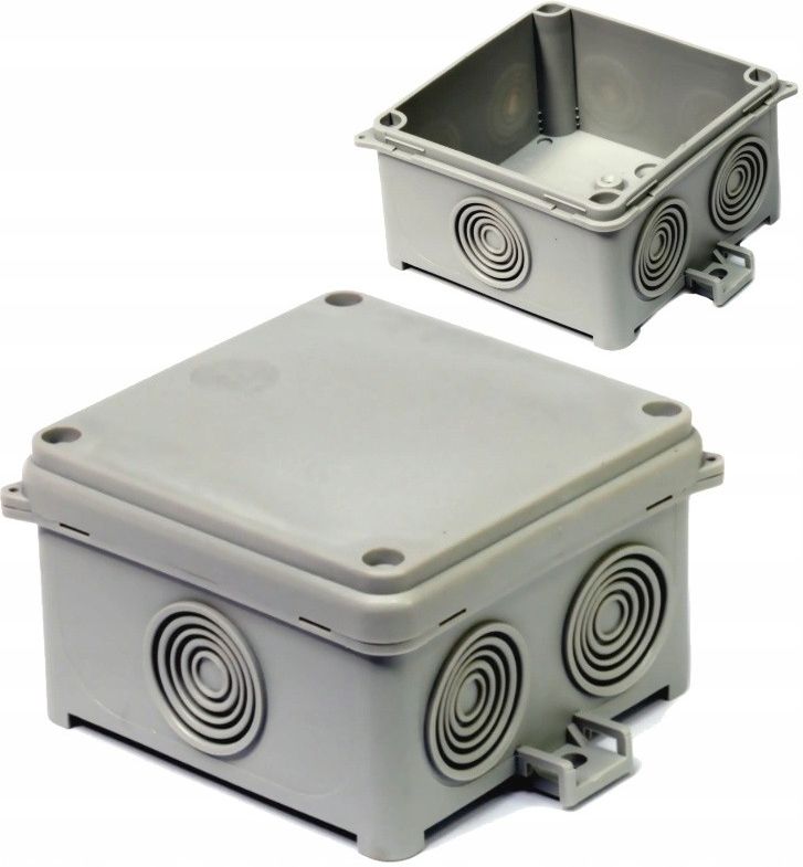 Puszka Naścienna z Dławnicą Simet N80x80F Puszka Naściena o dobrej szczelności IP 54. Samozatrzaskowa pokrywa. Mocowanie do podłoża również opaskami elektrotechnicznymi. Możliwość plombowania. Wygodne osłabienia pod wprowadzanie rur i przewodów (7 osłabień o średnicach zewnętrznych od 7 do 21mm) W zestawie znajduje się 1 szt. Puszki Simet N80x80F Dane Techniczne WYMIARY Szerokość: 88mm Wysokość: 55mm Długość: 88mm OGÓLNE Materiał: bezhalogenowy, samogasnący Odporność na żar: 650°C Kolor: szary
