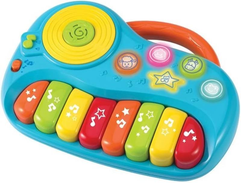 Zadbaj o rozwój muzyczny swojej pociechy już od najmłodszych lat! Kup jej kolorowe pianinko Smiki i przekonaj się, ile radości dostarczy jej ten niezwykły instrument. Zabawka rozwinie kreatywność i zmysł słuchu małego muzyka oraz jego koordynację wzrokowo-ruchową. Zacznijcie swoją przygodę z muzyką już dziś. Kto wie, może początkowa zabawa przerodzi się w prawdziwą pasję! 8 dużych, kolorowych przycisków pozwala tworzyć małemu artyście dowolne kompozycje muzyczne 4 przyciski ze zwierzątkami zmieniają dźwięki pianinka w odgłosy charakterystyczne dla danego zwierzątka, umożliwiając dziecku rozszerzenie repertuaru przycisk z nutką skrywa 10 wesołych melodyjek wygodny uchwyt ułatwi przenoszenie zabawki i sprawi, że maluch będzie mógł swoje pianinko zabrać wszędzie ze sobą dodatkowym atutem jest regulacja głośności