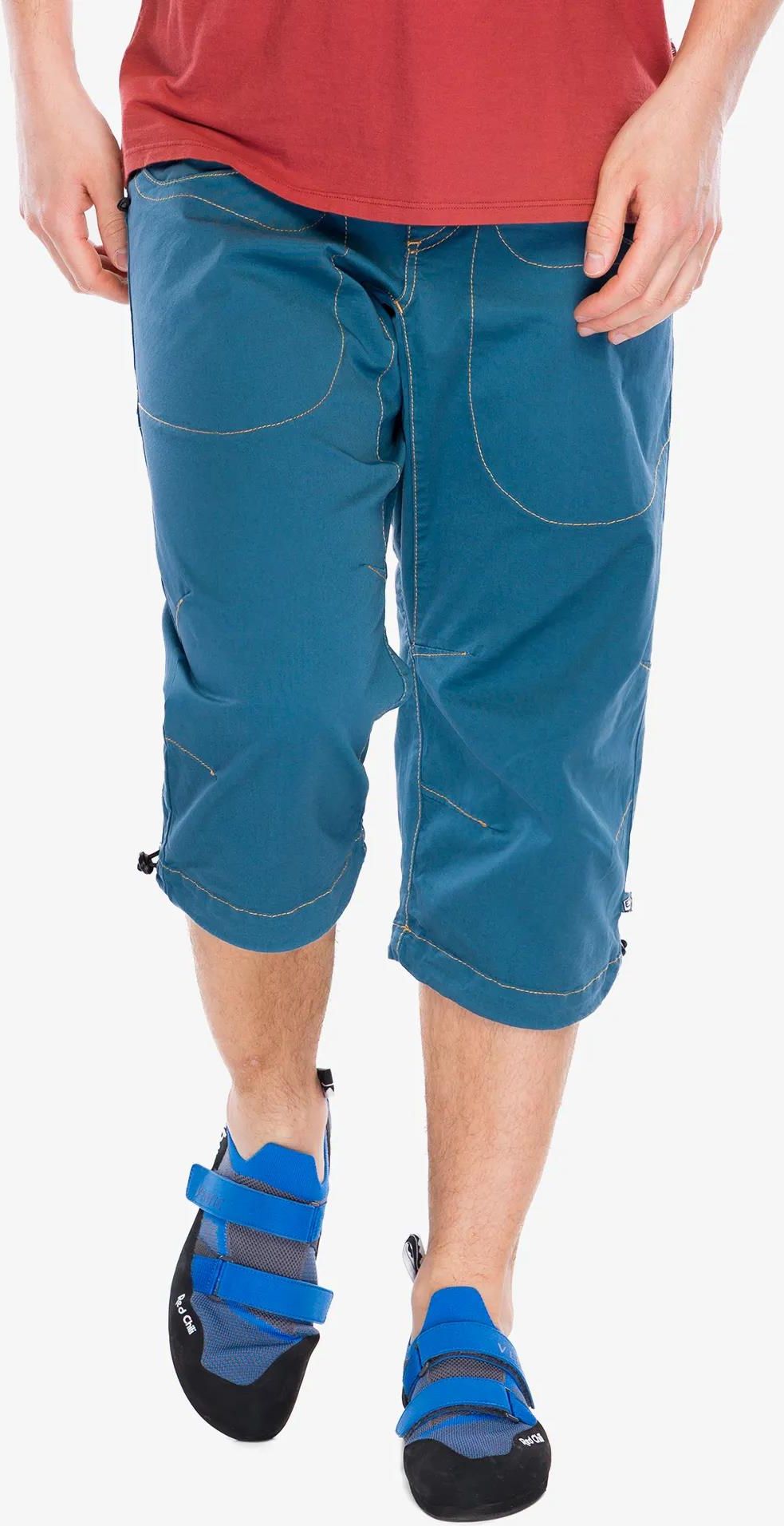 Spodenki wspinaczkowe E9 R3 - apatite dzięki swojej dopracowanej konstrukcji zniosą trudy wspinaczki w najcięższych warunkach. Z powodzeniem wykorzystasz je nie tylko podczas treningów w panelu, ale także podczas aktywności w wysokich partiach gór. Spodenki wspinaczkowe E9 R3 - apatite za sprawą swojej długości będą perfekcyjnym wyborem na lato. Dodatkowo zaimplementowane w nich 3 kieszenie umożliwią Ci przeniesienie niezbędnych akcesoriów, a sznurkowe ściągacze nogawek pozwolą na ich lepsze dopasowanie. Spodenki wspinaczkowe E9 R3 - apatite wyposażone zostały w elastyczny pas, który doskonale dopasuje się do twojej sylwetki i zapobiegnie powstawaniu jakichkolwiek otarć. Dzięki swojej konstrukcji zapewnią Ci maksymalny komfort i mobilność, a regularny krój tylko spotęguje poczucie wygody. Wykonane zostały z bawełny i elastanu. Dzięki temu zachowują one bardzo wysoką elastyczność, nieocenioną podczas pokonywania najtrudniejszych dróg wspinaczkowych. Dodatkowo sznurkowe ściągacze nogawek pozwolą Ci dopasować je do własnych preferencji. Znajdziesz w nich także uchwyty na szczoteczkę do chwytów po obu stronach. Spodenki E9 R3.2 - apatite - najważniejsze cechy:Model, który doskonale spisze się podczas letniej wspinaczki;Długość 3/4;Elastyczny pas;Regularny krój;Nogawki ze ściągaczami sznurkowymi;Dwie kieszenie boczne, oraz jedna tylna;Uchwyty na szczoteczkę po obu stronach.