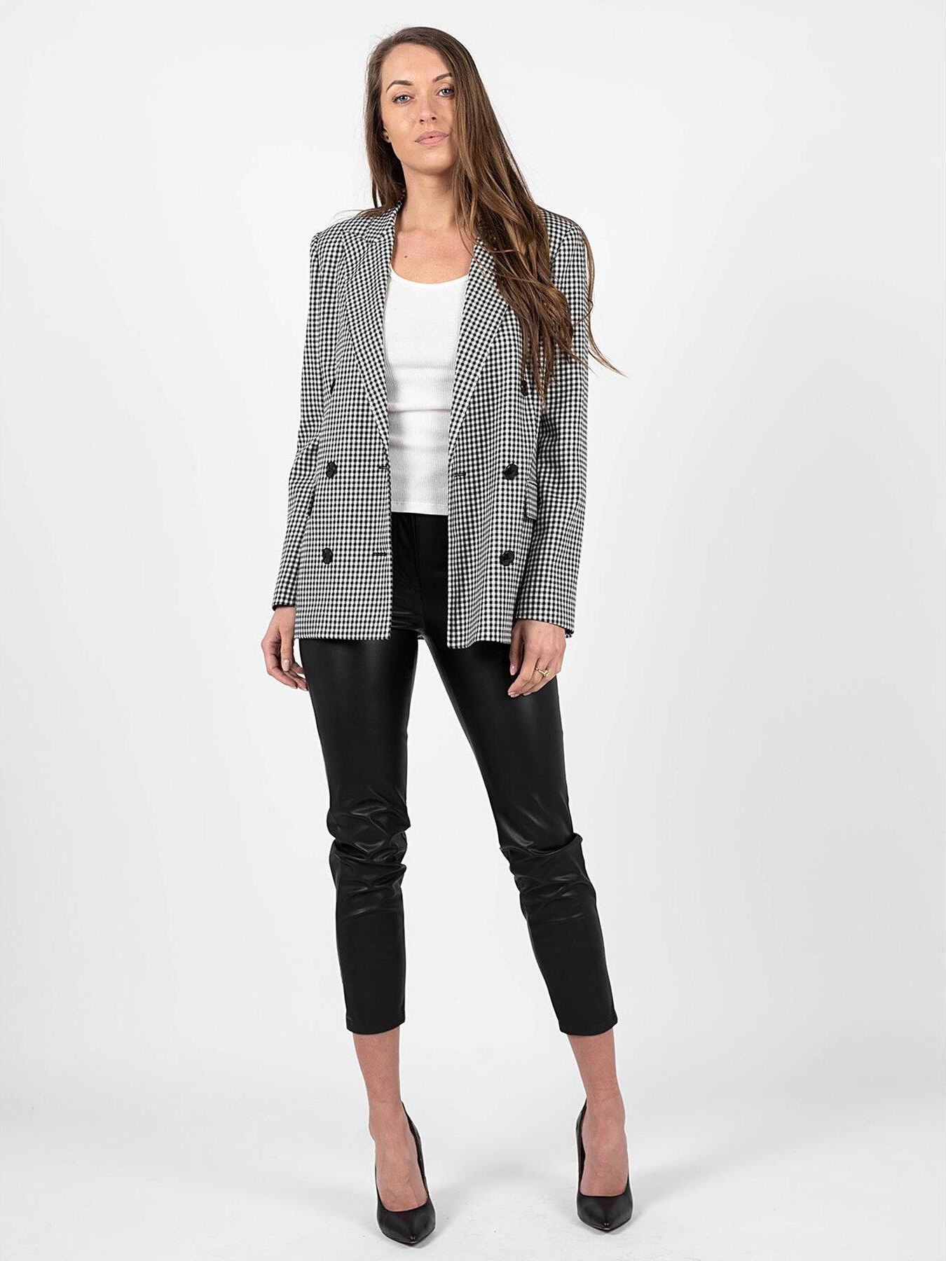 Dopasowany fason Wysoki stan Zapinane na zamek błyskawiczny oraz guzik Z przodu trzy kieszenie, z tyłu dwie Kieszenie ozdobione połyskującymi dżetami Na prawej nogawce wyszyty motyw kwiatów Wzdłuż tylnych nogawek przeszycia Wykonane z wysokiej jakości skóry ekologicznej