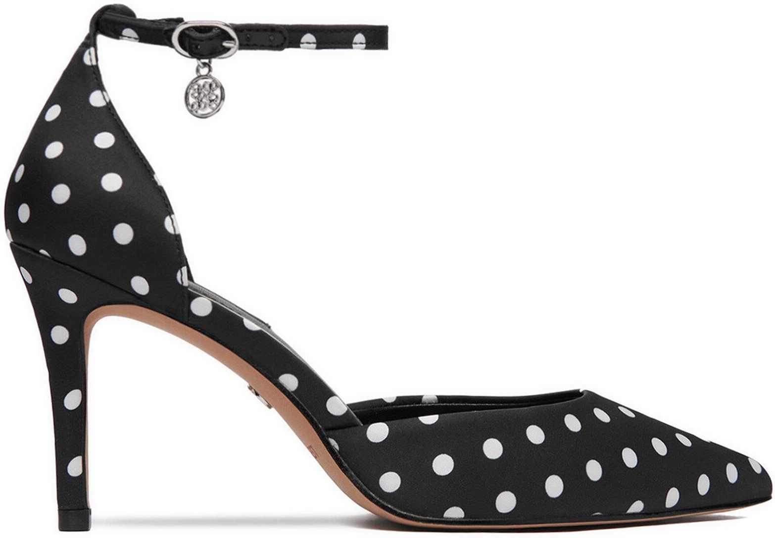 Dodaj szyku i elegancji każdej stylizacji dzięki damskim szpilkom od Nine West. Wykonane z wysokiej jakości materiału włókienniczego, zachwycają delikatnym wzorem w kropki, który dodaje im subtelnego uroku. Smukła szpilka podkreśli Twoją sylwetkę, a szpiczasty nosek nada całości wyrafinowanego charakteru. Regulowany pasek ze sprzączką zadba o idealne dopasowanie, a subtelna zawieszka stanowi stylowy akcent, który przyciąga spojrzenia. Te szpilki to kwintesencja kobiecości i doskonały wybór na wyjątkowe okazje. Wzbogać swoją garderobę o ponadczasowy model, który dopełni każdą elegancką kreację!
