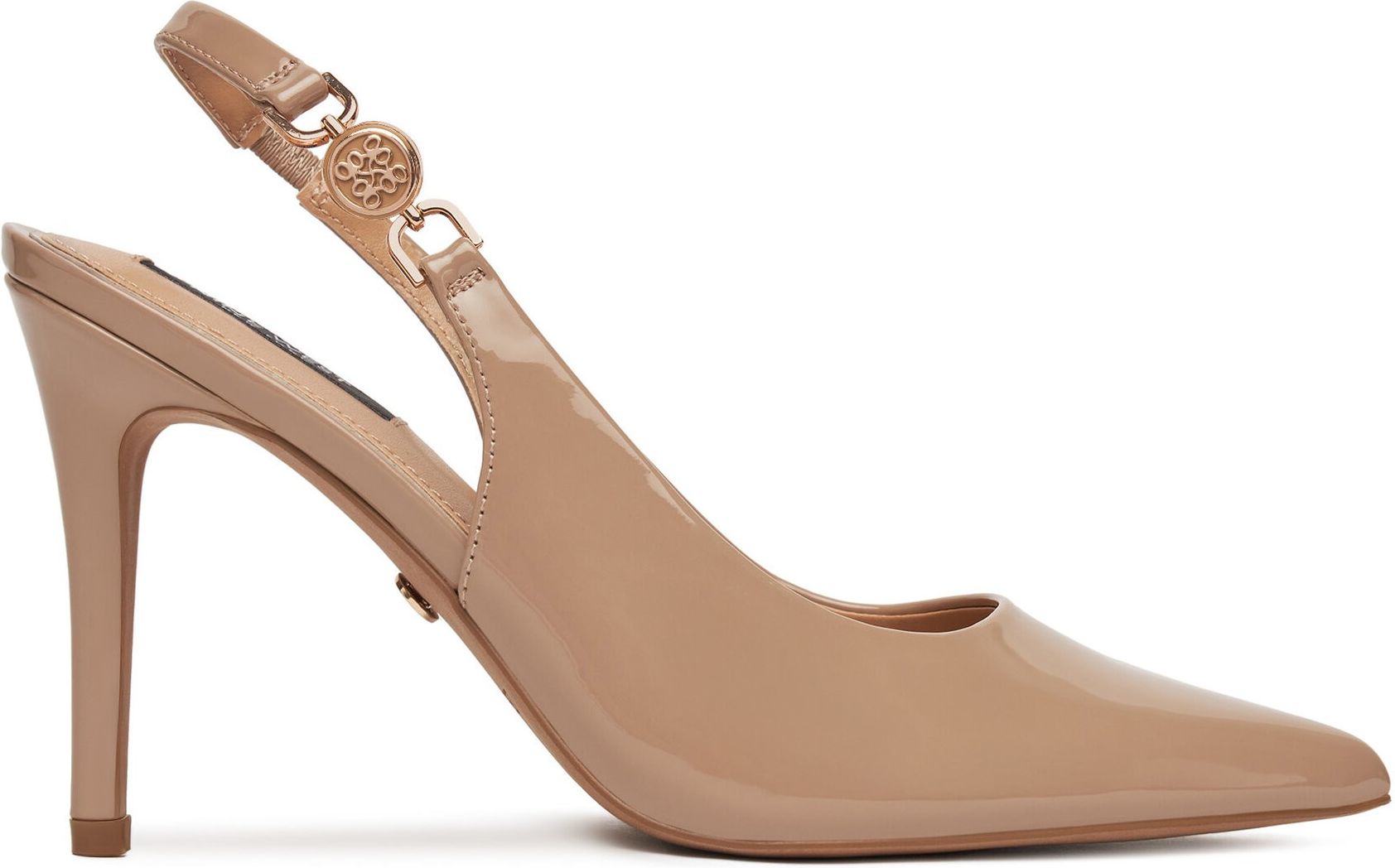 Beżowe czółenka marki Nine West to kwintesencja elegancji i stylu, idealne dla kobiet, które cenią sobie wyrafinowany wygląd i wygodę. Wykonane z wysokiej jakości syntetyku, te wsuwane buty zapewniają niesamowity komfort noszenia przez cały dzień. Smukła szpilka dodaje sylwetce lekkości, a szpiczasty nosek podkreśla klasyczny, wizytowy charakter tych butów. Odkryta konstrukcja czyni je idealnym wyborem na ważne spotkania biznesowe oraz eleganckie okazje. Dodaj nutę klasy do swojej garderoby z tymi wyjątkowymi czółenkami!