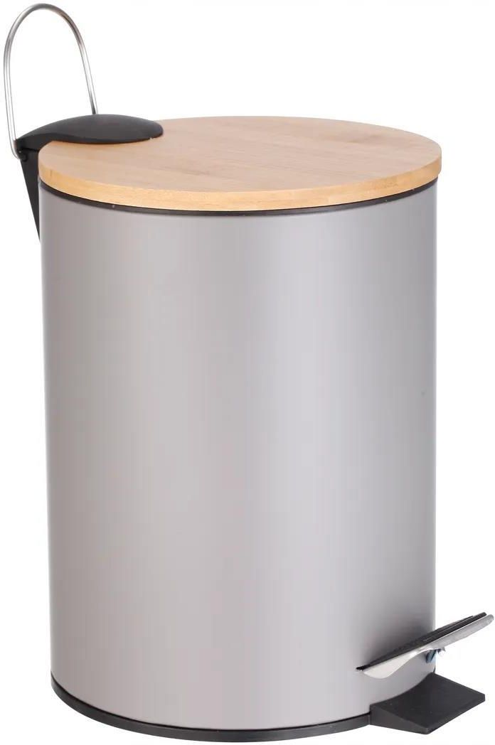 Altom Kosz Łazienkowy Metalowy Z Pokrywą Bambusową I Plastikowym Wkładem 17x17x24cm Szary 3l (3040035) Mińsk Mazowiecki