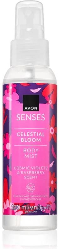 Avon Senses Celestial Bloom, 100 ml, Spraye do ciała dla kobiet, Spray do ciała Avon Senses zapewni przyjemne odświeżenie kiedykolwiek w ciągu dnia. Właściwości: przyjemnie pachnie odświeża i dodaje energii nawilża i lekko zmiękcza Sposób użycia: Aplikuj kiedykolwiek w ciągu dnia.