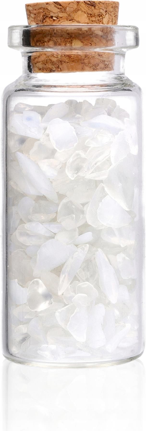 Buteleczka z kamieniami Opalit 5 cm Twoja osobista butelka energii Buteleczka z kamieniami naturalnymi to prawdziwa gratka dla miłośników kamieni, natury i estetyki. Wybierz kamienie, które przyciągną do Twojego życia to, czego najbardziej potrzebujesz. Buteleczka z kamieniami stanie się w ten sposób osobistym narzędziem do pracy z energią, które zawsze masz pod ręką. Słoiczek z kamieniami Informacje Wymiary: około 52 x 20 mm Słoiczek: szkło, korek Kamień: szklany kamień OPALIT oraz domieszki innych minerałów Kolor kamienia: biały, mleczny, niebieskawy, żółtawy Cena dotyczy 1 sztuki. Każda buteleczka jest inna. Zdjęcia przedstawiają przykładowe buteleczki. Buteleczkę wysyłamy losowo. Moc w małej formie Buteleczka jest niezwykle poręczna i można ją zabrać wszędzie – zmieści się w kieszeni czy torebce. Dzięki wyjmowanemu korkowi możesz otworzyć buteleczkę. Doskonale sprawdzi się jako ozdoba na biurku, półce czy przy łóżku, zwłaszcza w zestawieniu po kilka buteleczek. Przezroczyste szkło pozwala na podziwianie różnorodnych barw i kształtów kamieni, które wypełniają wnętrze buteleczki. Idealna do kolekcji minerałów lub jako narzędzie edukacyjne. Opalit ✨ Ukojenie i komunikacja Jego delikatne, pielęgnujące wibracje promują wewnętrzny spokój i równowagę emocjonalną. Opalit pomaga w łagodzeniu napięć, zachęcając do relaksu i pozytywnego nastawienia. Ułatwia płynną komunikację na wszystkich poziomach, a zwłaszcza duchowym. Daje siłę do werbalizacji naszych ukrytych uczuć. Dba o połączenie z domem i rodziną. Opalit wzmacnia intuicję, wrażliwość i zrozumienie emocjonalne. Jego promienny blask oświetla Twoją ścieżkę i prowadzi przez życiowe zmiany. Jego delikatne wibracje wspierają cechy empatii, lojalności i wrażliwości, wpajając poczucie przynależności i promując harmonijne relacje.