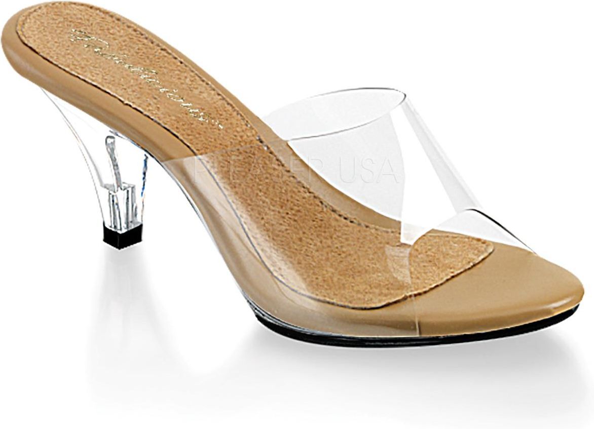 Klapki Fabulicious - stylowe Belle-301 Jeśli poszukujesz gustownych klapek na niewysokim obcasie, idealnych na co dzień, ale także na specjalne okazje, model marki Fabulicious Belle-301 to wybór idealny dla Ciebie! Klapki Fabulicious Belle-301 to buty doskonałe dla pań, które nie przepadają za wysokimi obcasami lub po prostu nie czują się w nich komfortowo czy pewnie. Za modelem przemawia dodatkowo jego wyjątkowy styl, ale i nienaganna jakość, która przekłada się również na szczególną trwałość obuwia. Poznaj bliżej klapki na obcasie Belle-301 i przekonaj się sama! Gustowne i proste klapki Belle-301 W klapkach marki Fabulicious Belle-301 poczujesz się pewnie, stylowo i seksownie. Co więcej, dzięki niewysokiemu obcasowi możesz chodzić w nich przez cały dzień, a Twoje stopy w ogóle nie odczują zmęczenia! Na wysoki komfort użytkowania butów składa się nie tylko obcas o wysokości 7,6 centymetra, ale także miękka, przyjemna w dotyku i starannie wyprofilowana podeszwa modelu. Całość wieńczy natomiast delikatna, transparentna cholewka, wykonana z doskonałej jakości silikonu. Model dostępny jest w naszej ofercie w dwóch atrakcyjnych wersjach kolorystycznych - białej i kamelowej - jak również w szerokiej gamie rozmiarów, od 35 do 44.