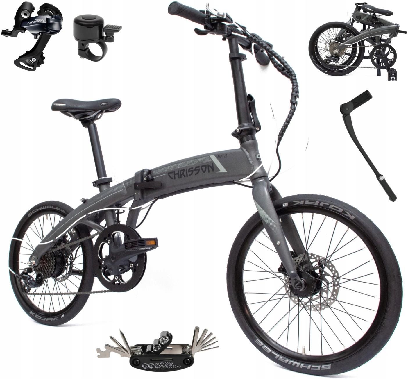 CHRISSON to niemiecka firma specjalizująca się w produkcji rowerów miejskich, trekkingowych, górskich oraz składanych. Firma zdobyła uznanie na rynku dzięki wysokiej jakości swoich produktów oraz nowoczesnemu designowi. Rowery CHRISSON są cenione za trwałość, komfort jazdy i estetykę, co czyni je popularnym wyborem zarówno wśród miejskich rowerzystów, jak i miłośników długodystansowych wycieczek. 🖤❤️💛 🏙️ Rower Elektryczny Składany Chrisson EF3, Koła 20" Kod roweru: R-4743 🌇 Składany. Miejski. Niezawodny. – Niemiecka jakość w kompaktowej formie. 👨‍🔧 Przed wprowadzeniem rowerów do sprzedaży są one weryfikowane, kalibrowane i regulowane. W związku z ustawieniami licznik może wskazywać przebieg. Specyfikacja Rama: 12", wysokiej jakości aluminium - lekka, wytrzymała, odporna na korozję, sztywna, składana Górna rura: 60 cm Widelec: Stalowy, sztywny Rozmiar kół: 20" Opony: 20" x 1.35" Schwalbe KOJAK, miejskie Obręcze: Aluminiowe, wzmacniane, stożkowe Hamulce (przód/tył): Tarczowe mechaniczne SHIMANO (tarcze i zaciski) - bezpieczeństwo przede wszystkim Manetka: SHIMANO Alivio, Rapidfire - niezawodna kontrola przełożeń Przerzutka tylna: SHIMANO Sora Ilość biegów: 9 Piasta: SHIMANO HB-M475 VIA Siodełko: Selle Royal Vacuum - zintegrowany system mocowania oświetlenia, co pozwala na łatwy montaż dedykowanej lampki Selle Royal (opcjonalnie) 💡 Pedały: Składane, wytrzymałe tworzywo sztuczne Silnik: Ananda 36 V 250 W, przekładniowy - solidne dynamiczne wspomaganie i wyjątkowo cicha praca Typ akumulatora: Litowo-jonowy Akumulator: 36 V 10 Ah 360 Wh, lekki (1,8 kg), wyjmowany - zgrabny, pojemny i wytrzymały Napęd: W tylnej piaście Maksymalna prędkość: 25 km/h Maksymalny zasięg: do 90 km Jednostka sterująca: LCD Tryby wspomagania: Tak, 5 + walk Wysokość siedziska: 65-100 cm, regulowana Waga roweru: 19 kg Maksymalne obciążenie: 125 kg Wymiary po złożeniu: 95 x 60 x 43 cm Kolor: Antracytowy, matowy Dodatkowo: GRATIS - pedały, dzwonek, stopka i multitool 🚲 MOŻLIWOŚĆ ZŁOŻENIA ROWERU DO SUPERKOMPAKTOWYCH WYMIARÓW! Tylko 95 cm (dł.) x 60 cm (wys.) x 43 cm (szer.) – zmieści się niemal wszędzie! 🧳🚗 Waga: zaledwie 19 kg – lekki, poręczny i gotowy do drogi! Dzięki prostemu i szybkiemu systemowi składania ✨ wystarczy: ✅ złożyć pedały ✅ opuścić kierownicę (zwracając uwagę na okablowanie) ✅ złożyć ramę na pół …i gotowe! 🙌 🧭 Idealny do transportu w bagażniku auta, przyczepie kempingowej, a zimą możesz go łatwo przechować praktycznie w każdym miejscu! 🏡 Praktyczność, mobilność i wygoda – wszystko w jednym! 💼🚴 🚴‍♂️ REGULOWANA WYSOKOŚĆ SZTYCY I KIEROWNICY – dopasuj rower do siebie w kilka sekund! 🔧 Zarówno sztyca pod siodełkiem, jak i kierownica mają regulowaną wysokość, dzięki czemu z łatwością ustawisz je odpowiednio do swojego wzrostu – niezależnie, czy masz 155 cm, czy nawet 190 cm! 📏 👨‍👩‍👧‍👦 Świetny wybór dla całej rodziny – jeden rower, wiele możliwości! Szybka i intuicyjna regulacja, z którą poradzi sobie praktycznie każdy – bez narzędzi, bez stresu. ROWER ELEKTRYCZNY Z NAPĘDEM W TYLNEJ PIAŚCIE – idealny wybór na miejskie trasy i nie tylko! 🏙️🚴 Rower wyposażony jest w wydajny silnik przekładniowy Ananda 36V / 250 W, umieszczony dyskretnie w tylnej piaście – to rozwiązanie zapewnia naturalne odczucie jazdy i świetną trakcję, zwłaszcza na asfalcie i lekkich wzniesieniach. 🔋 🚀 Dzięki nowoczesnym czujnikom system wspomagania pracuje płynnie i dynamicznie – wspiera Cię aż do 25 km/h, zgodnie z przepisami, ale z ogromnym komfortem! 💡 Idealny do codziennych dojazdów, rekreacyjnych przejażdżek i weekendowych wypadów za miasto. 🔋 LEKKA I WYJMOWANA BATERIA Rower wyposażony jest w zgrabną baterię z ogniwami klasy premium, która waży zaledwie 1,8 kg, a mimo to zapewnia imponujący zasięg do 90 km! 🚴‍♂️🌆 To idealne rozwiązanie na codzienne dojazdy po mieście i dłuższe wypady za miasto. Szybkie ładowanie w ok. 5 godzin – gotowe zanim zdążysz zatęsknić za jazdą! 💡 Wbudowana inteligentna elektronika BMS dba o żywotność i bezpieczeństwo baterii, a solidna obudowa gwarantuje odporność na codzienne użytkowanie. 🏠 Bateria jest łatwo wyjmowana, więc możesz ją wygodnie ładować w domu, biurze czy gdziekolwiek chcesz. 🔑 Dodatkowo jest zabezpieczona zamkiem na klucz, co zwiększa Twoje poczucie bezpieczeństwa – nie musisz się martwić, że ktoś ją po prostu zabierze. 📊 INTUICYJNY PANEL LCD KINGMETER – PEŁNA KONTROLA NA WYCIĄGNIĘCIE RĘKI! Dzięki czytelnemu i nowoczesnemu wyświetlaczowi LCD masz zawsze pod ręką najważniejsze informacje: 🚴‍♂️ aktualna prędkość 🔋 poziom naładowania baterii 📏 pokonany dystans ⚙️ wybrany tryb wspomagania Do dyspozycji masz aż 5 poziomów wspomagania elektrycznego, które pozwolą Ci idealnie dopasować siłę wsparcia do trasy i Twojego stylu jazdy. 💪 Zmęczyłeś się lub czeka Cię podejście pod górkę? Włącz tryb WALK ASSIST – silnik lekko napędzi rower, ułatwiając prowadzenie bez wysiłku. 🧠 Proste sterowanie, szybka reakcja i więcej przyjemności z jazdy – to wszystko z jednym panelem! 👌 OPONY SCHWALBE – MISTRZOWSKA JAKOŚĆ NA MIEJSKIE TRASY! Rower wyposażony jest w wysokiej klasy opony marki SCHWALBE – model KOJAK o rozmiarze 20" x 1,35". To supercienkie, gładkie opony bez bieżnika, które zostały stworzone z myślą o miejskich warunkach 🚦🌆 – ciche, lekkie i niesamowicie komfortowe. 💨 Brak bieżnika = mniejsze tarcie, a to oznacza: ✅ niższy opór toczenia ✅ mniejszy wysiłek przy pedałowaniu ✅ oszczędność energii baterii i silnika ✅ dłuższy zasięg na jednym ładowaniu! 🔋 I co najważniejsze – nawet gdy akumulator się rozładuje, to dzięki zwinnym i gładkim oponom