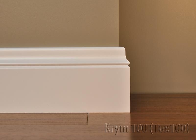 Wilgocioodporna listwa przypodłogowa wykonana z MDF, lakierowana na biało, kolor z palety RAL 9003. Dzięki najnowszej technologii lakierowania lakier nie żółknie i nie płowieje. Wymiary: 16x100x2440mm MATERIAŁ: MDF - płyta drewnopochodna średniej gęstości, podstawowy materiał do produkcji mebli powierzchnia lakierowana lakierami poliuretanowymi dolna krawędź izolowana przeciwwilgociowo listwy posiadają podfrezowanie na kable oraz frezy poprawiające mocowanie do ściany
