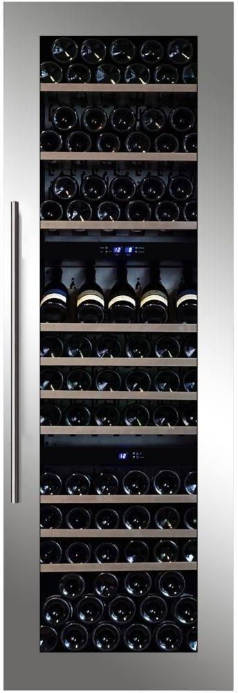 Chłodziarka do wina DX-89.246TSS Trzystrefowa zintegrowana chłodziarka do wina na 89 butelek. Dzięki eleganckiej obudowie i klamce ze stali nierdzewnej, DUNAVOX Soul-89 jest idealny do nowoczesnych wnętrz kuchennych. Butelki wsparte są na solidnych drewnianych półkach wkomponowanych w białe wnętrze. Jednostka ta wymaga wentylacji z tyłu, a w cokole musi być zamontowana kratka, co ma kluczowe znaczenie, ponieważ bez niej chłodziarki do wina nie będą w stanie prawidłowo chłodzić. Należy pamiętać, że ten model jest przeznaczony do wbudowania obok szafek kuchennych i urządzeń i nie jest przeznaczony jako chłodziarka do wina wolnostojąca lub podblatowa. Dane Techniczne butelki (0,75 l bordeaux): 89 butelek Bordeaux strefy chłodzenia: 3 drzwi: dwustronne przyciemniane drzwi szklane (poddane obróbce UV) kolor obudowy: czarny półki: drewniane oświetlenie: białe, oświetlenie wewnętrzne LED szerokość: 587 mm wysokość: 1788 mm głębokość: 557 mm