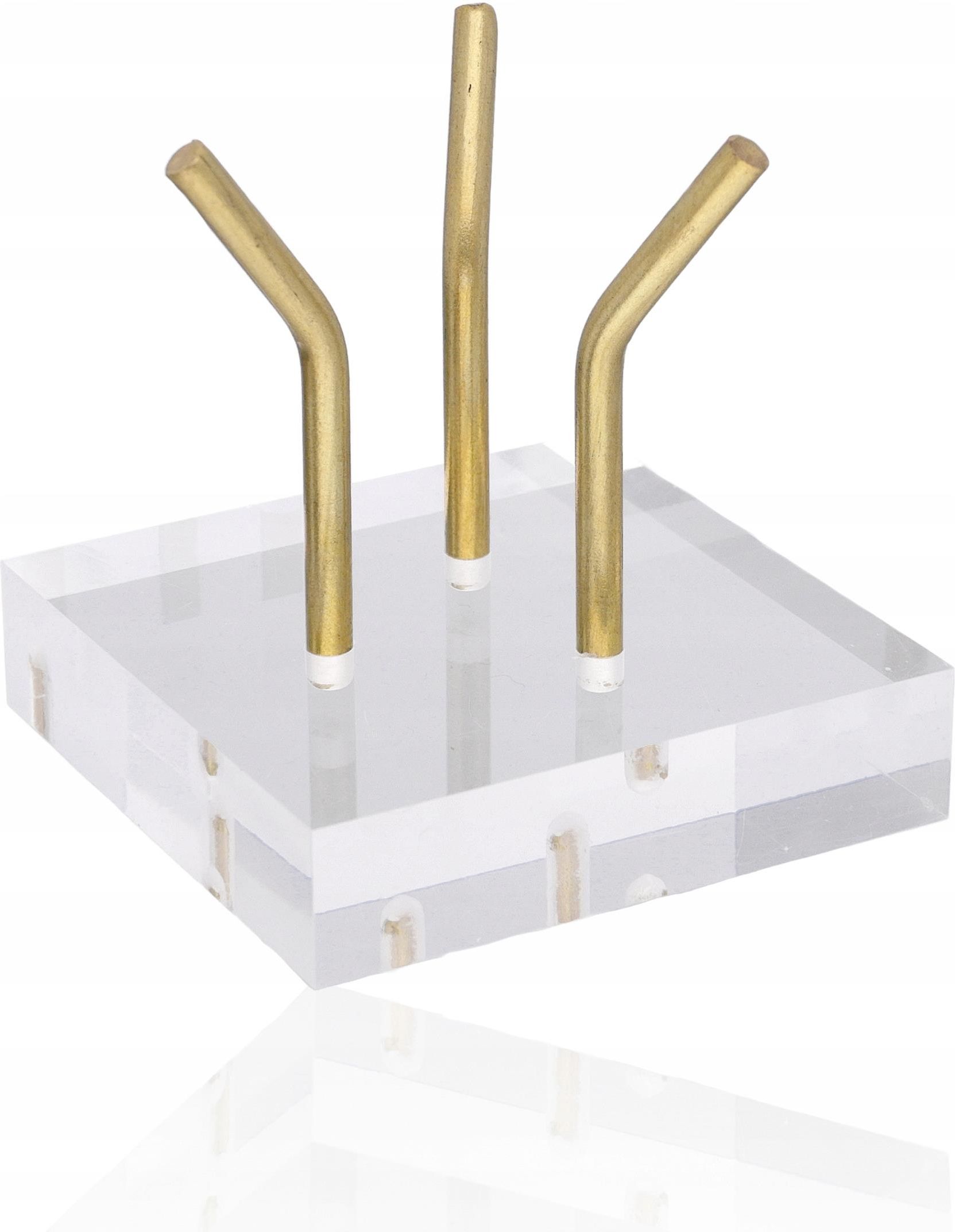 Podstawka pod minerały 4 cm Stojak na minerały i kamienie Nowoczesny i funkcjonalny design. Staranne wykończenie czyni podstawkę stylową i elegancką. Twój minerał zdecydowanie zyska na prestiżowym wyglądzie, gdy dopasujesz mu odpowiednią podstawkę. Unikalna, geometryczna konstrukcja daje duże pole do aranżacji kolekcji. Podstawki stoją stabilnie. Metalowe podpórki są delikatnie wygięte, przez co tworzą intrygującą figurę na kształt nowoczesnej rzeźby. Informacje Wymiary: 4 x 4 x 4,5 cm Materiał: akryl, metal Funkcja: podstawka, ekspozytor Kolor: przezroczysty, złoty Cena dotyczy 1 sztuki podstawki, bez kamienia. Eksponowanie minerałów na podstawkach Eksponowanie minerałów na podstawkach ma wiele zalet, zarówno estetycznych, jak i praktycznych: Podkreślenie urody: Podstawki, zwłaszcza te zaprojektowane z myślą o stylu, mogą doskonale podkreślić naturalne piękno minerałów. Dzięki nim uwaga obserwatora skupia się na kolorach, teksturze i kształcie kamieni. Stabilność: Użycie podstawki zapewnia stabilność minerałów, co zmniejsza ryzyko przewrócenia czy uszkodzenia. To szczególnie istotne w przypadku delikatniejszych okazów. Ochrona powierzchni: Podstawki chronią blaty mebli przed zarysowaniami i innymi uszkodzeniami, które mogą być spowodowane kontaktem z minerałami. Zwiększenie widoczności: Ekspozycja na podstawkach ułatwia podziwianie minerałów z różnych kątów, a także sprawia, że są one bardziej zauważalne w przestrzeni. Zorganizowanie przestrzeni: Używanie podstawek pozwala na uporządkowanie kolekcji minerałów, co ułatwia ich przeglądanie i cieszenie się nimi. Styl dekoracyjny: Podstawki mogą być elementem dekoracyjnym samym w sobie, co dodaje charakteru wnętrzu i sprawia, że staje się ono bardziej osobiste.