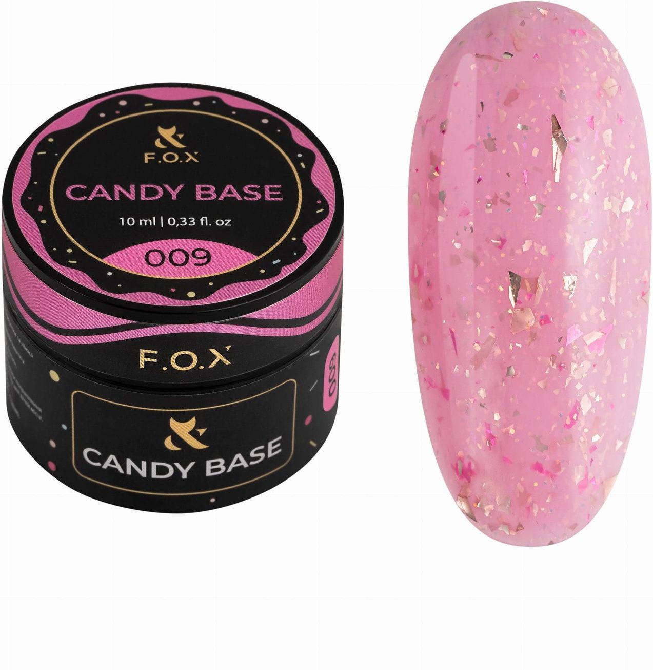 F.O.X Candy Base - najnowsza wiosenna kolekcja kolorowych baz w subtelnych półprzezroczystych odcieniach z dodatkiem różnorodnych i kolorowych cząsteczek folii i brokatu. Candy Base to idealny sposób na nadanie paznokciom subtelnego blasku i wyjątkowego charakteru. Mnóstwo mieniących się drobinek w różnych kolorach i kształtach pozwala na stworzenie niepowtarzalnych stylizacji, które zachwycą każdego. Folia nie opada, równomiernie rozprowadza się w bazie, jest cienka i elastyczna, dlatego nie przeszkadza w pracy. Baza ma średnio gęstą konsystencję, łatwo się poziomuje, ukrywa niedoskonałości płytki. Nadaje się do wzmocnienia i utrzymania kształtu oraz krawędzi miękkich paznokci, bez efektu kurczenia się. *Zalecamy aplikację F.O.X Candy Base na paznokieć pokryty cienką warstwą elastycznej bazy w charakterze podkładu. Zalety: Subtelne pastelowe odcienie Średnio twarda Nadaje się do wzmocnienia Średnio gęsta konsystencja Aplikacja: Nadaj paznokciom odpowiedni kształt, zmatuj płytkę Zastosuj preparat F.O.X Nail Prep Zastosuj preparat F.O.X Ultrabond non-acid Całą powierzchnię paznokcia pokryj cienką warstwą elastycznej bazy F.O.X i utwardź, następnie F.O.X Candy Base; jeśli zachodzi konieczność wzmocnienia i wyrównania, zastosuj metodę kropelkową Utwardź w lampie UV 36W - 2 min; w lampie LED/UV 48W - 30-60 s. Zakończ stylizację aplikacją i polimeryzacją wybranego topu z oferty F.O.X Pojemność: 10 ml