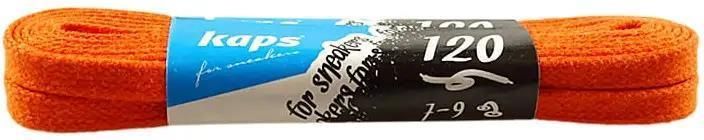 Pomarańczowe, płaskie, woskowane sznurówki do butów, 120 cm, Kaps. Sneakers Wax Laces Kaps są idealne do nawlekania 14-18 oczek w cholewce obuwiowej. Szerokość sznurówek 6 mm.