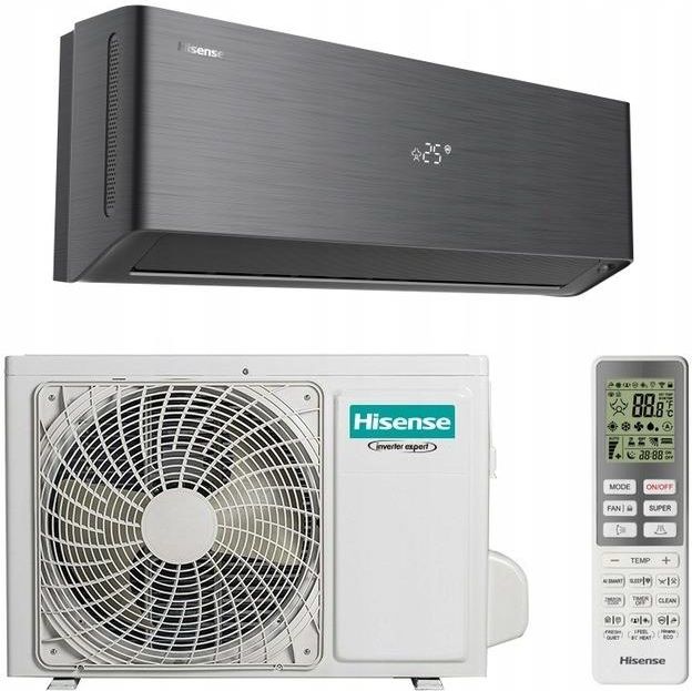 Klimatyzator ścienny Hisense Energy Pro X o mocy 2,6 kW (chłodzenie) oraz 3,2 kW (grzanie) Urządzenie z modułem WiFi, zaworem EEV i pakietem zimowym w agregacie zew. (grzanie nawet przy -22*C temp. zew.) Model klimatyzatora: QH25XV4B czarny Efektywne całoroczne, energooszczędne chłodzenie i …