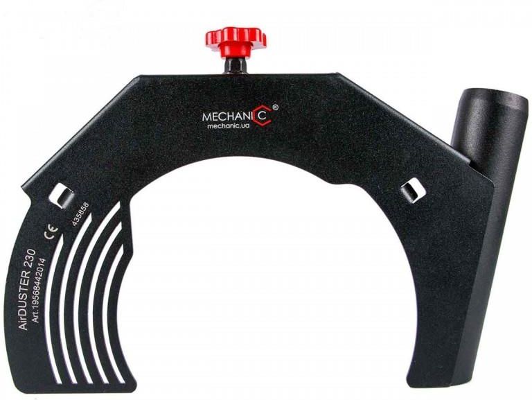 Przystawka (osłona przeciwpyłowa) DISTAR Mechanic 19568442014 AirDuster do cięcia, do szlifierki kątowej 230mm Kod towaru: 19568442014 Marka: Mechanic Uniwersalna przystawka odciągająca pył do cięcia do szlifierki kątowej 230 mm Mechanic AirDUSTER 19568442014 Jeszcze bardziej niezawodny, jeszcze wygodniejszy, jeszcze bardziej wszechstronny system odsysania pyłu podczas cięcia.Osłona przeciwpyłowa ma otwartą, oddychającą konstrukcję. Dzięki kratce aerodynamicznej zasysane jest powietrze, które pod ciśnieniem jest dostarczane do obszaru cięcia, schładzając dysk, zwiększając jego trwałość i wydajność cięcia. Zalety produktu: Prosty niezawodny system mocowania. Urządzenie montowane jest na standardowej obudowie szlifierki kątowej dowolnego modelu i producenta. Ze względu na wytworzenie silnego ciśnienia przepływu powietrza, nie ma potrzeby stosowania potężnych odkurzaczy budowlanych. Pusty wąż można podłączyć do węża bez odkurzacza i będzie skuterznie odprowadzać pył. Aerodynamiczna obudowa pozwala zobaczyć obszar cięcia i kontrolować prostoliniowość. Zapewnia skuteczne chłodzenie dysku. Niewielka waga w porównaniu do zamkniętych obudów. Zastosowanie: Szlifierki kątowe 230 mm
