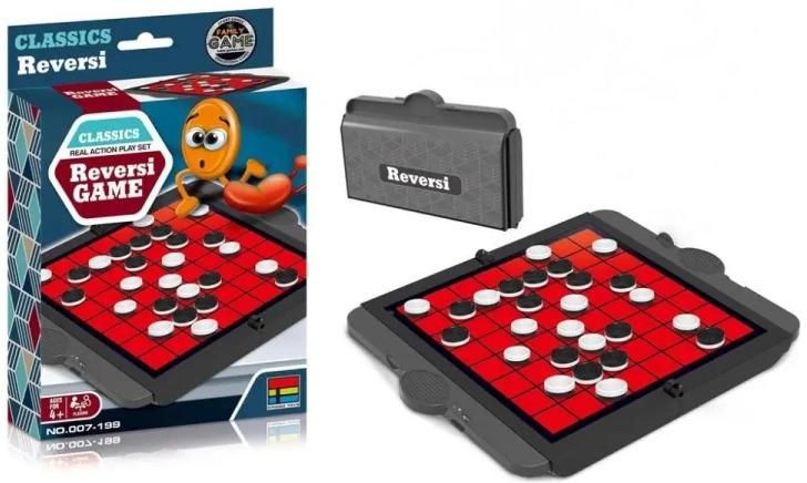 Poznaj klasyczną grę strategiczną Reversi, teraz w wersji podróżnej! Kompaktowy zestaw umożliwia zabranie tej fascynującej gry w każdą podróż. Zasady są proste, a rozgrywka pełna emocji. Dzięki dwukolorowym pionkom i składanej planszy z szufladkami, gra jest wygodna w użyciu i łatwa do przechowywania. Zasady gry: Każdy gracz stara się przeskakiwać pionki przeciwnika. Gdy graczowi uda się przeskoczyć pionek przeciwnika, zmienia jego kolor na swój. Gra kończy się, gdy cała plansza zostanie zapełniona, a wygrywa ten, kto posiada więcej pionków w swoim kolorze. Szczegóły produktu Przeznaczenie: dla 2 graczy, Wiek: od 4 lat, Wymiary zestawu: 22 x 14,5 x 4,5 cm, Zawartość zestawu: składana plansza w formie walizki, dwukolorowe pionki, szufladki do przechowywania elementów gry, Wysoka jakość wykonania: trwałe materiały, idealne do użytku w podróży. Reversi w wersji podróżnej to idealny wybór na rodzinne wypady, pikniki czy chwile relaksu w plenerze. Dzięki solidnemu wykonaniu i praktycznej konstrukcji gra jest niezawodna i gotowa na każdą przygodę!
