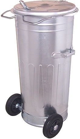 POJEMNIKI 110 LITRÓW • wykonane z blachy ocynkowanej 1,0 mm • części składowe łączone na ''zamki'' • wytłoczenia wzmacniające na płaszczu bocznym • dno odsadzone od podłoża • pierścień górny - blacha 2,0 mm - wyprofilowany (przegięty) na wysokości rączek • pokrywa tłoczona z ''noskiem'' i tłoczonym rokiem produkcji Wymiary: H - 102cm, śr.- 50cm (dno 38cm)