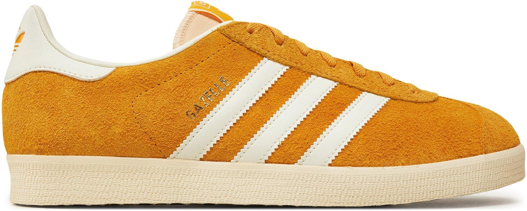Buty adidas Gazelle, wykonane z wysokiej jakości zamszu, to idealny wybór na co dzień. Miękka cholewka z kultowymi trzema paskami gwarantuje wygodę i trwałość. Płaska podeszwa oraz sznurowanie zapewniają stabilność i komfort noszenia. Buty posiadają okrągły nosek i wkładkę z materiału, co dodatkowo zwiększa wygodę użytkowania. Dzięki ponadczasowemu designowi świetnie komponują się z wieloma stylizacjami. Dostępne w różnych rozmiarach, idealne dla fanów mody i aktywności.