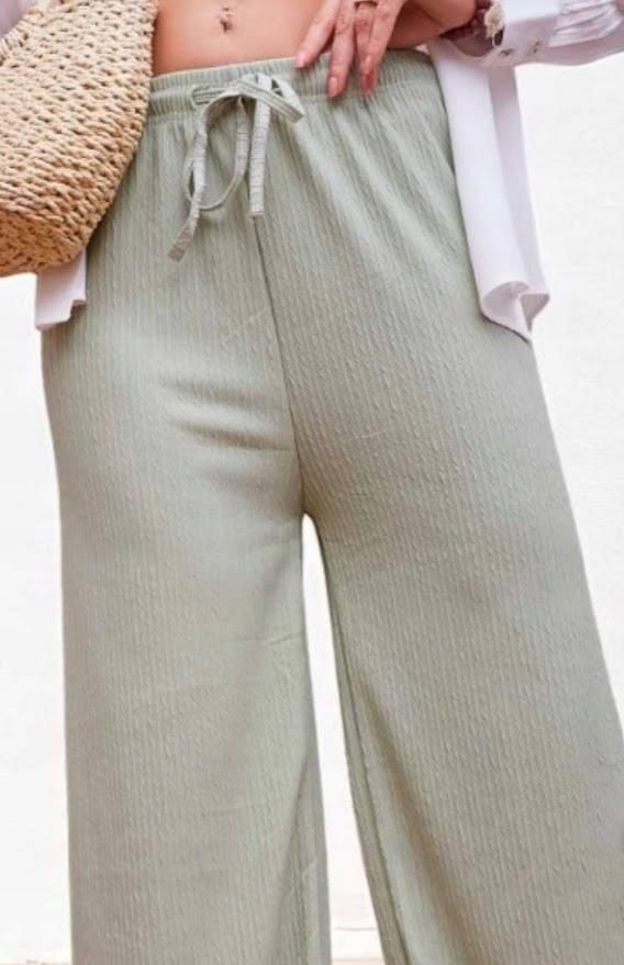 ....... hit wiosny........ Szerokie spodnie damskie to niezbędny element damskiej garderoby. W pasie mają elastyczną gumę, która świetnie je podtrzymuje, a jednocześnie nie uciska. Model jest wyjątkowo wygodny, zapewnia maksymalny poziom komfortu. Materiał świetnie układa się na sylwetce, nie opina, nie prześwituje. Świetnie nadają się do tworzenia zarówno eleganckich, jak i casualowych stylizacji. Szeroka nogawka nadaje całości modnego, nowoczesnego charakteru, optycznie wydłużając sylwetkę i dodając stylizacji lekkości ROZMIAR NA METCE XL/2XL WYMIARY SZEROKOŚĆ W PASIE 39cm X2-62cmX2 SZEROKOĆ W BIODRACH 65cm X2-87cmX2 DŁUGOŚĆ CAŁKOWITA 108cm DŁUGOŚĆ OD KROKU 68cm
