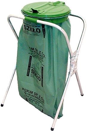 Metalowe stojaki na worki foliowe • wykonane ze stalowych ocynkowanych rur 1/2'' • pokrywy tłoczone z ''noskiem'' z blachy ocynkowanej • malowane farbami proszkowymi • mocowanie worka foliowego (poj. 100-120 litrów) odbywa się przy pomocy obejmy.