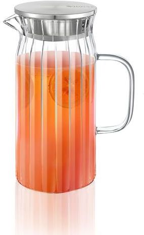 Dodaj klasy i funkcjonalności swojemu stołowi dzięki szklanemu dzbankowi Wilmax o pojemności 1000 ml. Wykonany z wysokiej jakości ryflowanego szkła żaroodpornego, nie tylko pięknie się prezentuje, ale także doskonale sprawdzi się w codziennym użytkowaniu. Wyposażony w praktyczną stalową pokrywę z sitkiem umożliwia wygodne serwowanie wody, lemoniady, soków oraz herbaty z owocami, miętą czy kostkami lodu, bez ryzyka przedostania się ich do szklanki. Dzbanek został zaprojektowany z myślą o wygodzie użytkownika, stabilny uchwyt gwarantuje pewny chwyt, nawet gdy dzbanek jest pełen.