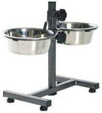 YARRO STOJAK REG. Z MISKAMI 3.9l / 28cm Miski metalowe na stojaku regulowanym Yarro Miski metalowe na stojaku regulowanym Yarro Miski metalowe na stojaku regulowanymZestaw dla psa na stojaku to najlepsze rozwiązanie dla większych psów. Pies wówczas nie jest zmuszony nachylać się nad pożywieniem. Weterynarze uważają, że miski na stojaku ograniczają powstawanie gazów a tym samym zmniejszają prawdopodobieństwo wystąpienia skrętu żołądka. Zestaw z miskami składa się z regulowanego wysokością metalowego stojaka oraz dwóch misek po 16cm średnicy Podstawowe cechy produktu Yarro Miski metalowe na stojaku regulowanym Miski ze stali nierdzewnej Nóżki stojaka wyposażone w gumowe nakładki *Maksymalna wysokość stojaka 44cm Spód stojaka podklejony jest plastikowymi nóżkami, ograniczającymi przesuwanie Pojemność: 3.9l Wymiary misek: 39.5 × 26 cm Przeznaczony do użytku domowego, użytkowanie na dworze wymaga dodatkowego zabezpieczenia stojaka przed korozją