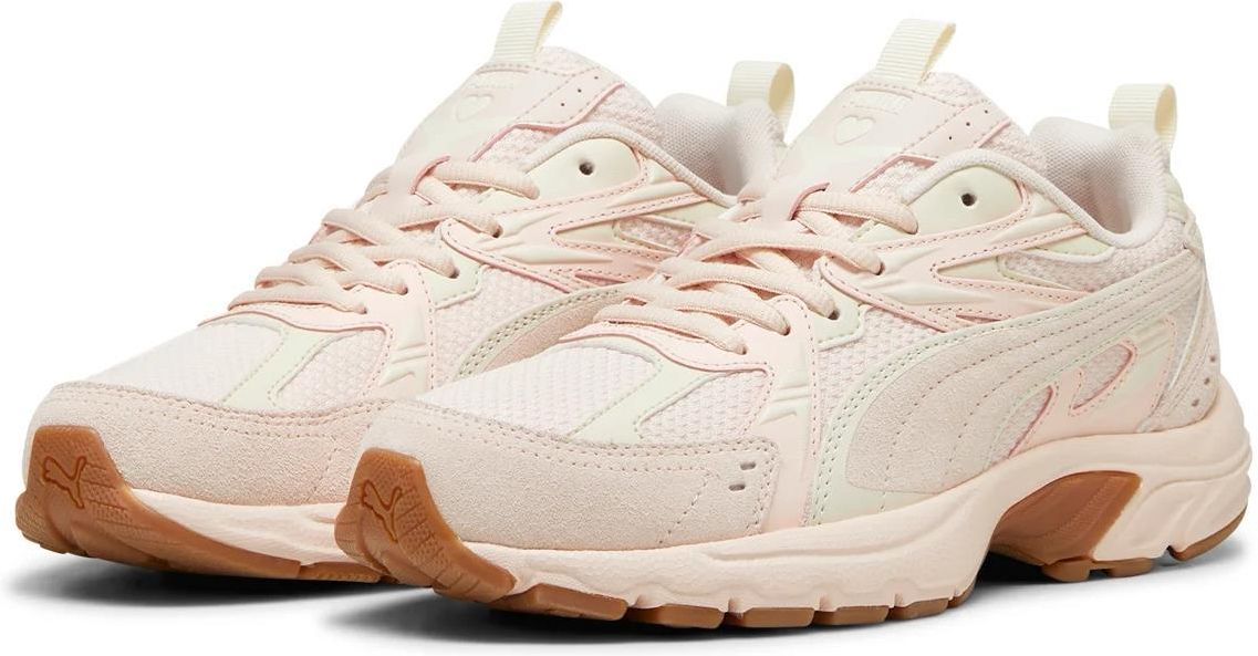 Damskie Sneakersy MILENIO TECH SUEDE COQUETTE 39 * Cholewka z przewiewnej siateczki * Zamszowe i syntetyczne nakładki * Standardowy krój * Wygodna wkładka SOFTFOAM+ zaprojektowana w celu zapewnienia miękkiej amortyzacji dzięki bardzo grubej pięcie * Podeszwa środkowa IMEVA * Gumowa podeszwa zewnętrzna * Ozdobne przeszycia i detale w kształcie serca * Cholewka butów wykonana jest w co najmniej 20% z materiałów pochodzących z recyklingu