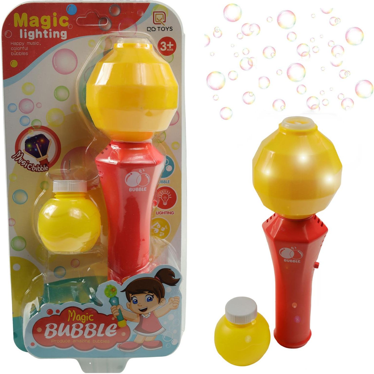 Maszynka do mydlanych baniek generator aparat płyn Materiał: Plastik Kolor: Wielokolorowy Stan: Nowy Bohater: brak Marka: Madej Płeć: Chłopcy, Dziewczynki Wiek dziecka: 3 lata + Certyfikaty, opinie, atesty: CE, EN 71 Wysokość produktu: : 30 Maszynka do baniek mydlanych w kształcie mikrofonu Co znajdziecie w opakowaniu? - Działającą na baterie maszynkę do robienia baniek mikrofonu ; Aparat oprócz puszczania kolorowych baniek gra muzyczkę i ma podświetlane elementy. Zabawka jest prosta w obsłudze, dzieci mogą z niej korzystać z łatwością. Aparat przypomina nieco pistolet, więc aby zrobić magiczne bąbelki, należy nacisnąć na spust. Polecana maluchom od 3 roku życia. Wysokosc zabawki ok :30 cm. Maszynka do robienia baniek mydlanych wykonana jest z tworzywa sztucznego, posiada certyfikat jakości CE.