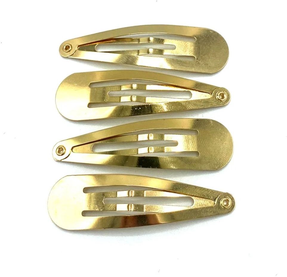 Zestaw 4 spinek do włosów z połyskiem w kolorze złotymElegancki zestaw 4 spinek do włosów o szerokości 5 cm, utrzymanych w modnym, złotym kolorze z delikatnym połyskiem. Dzięki solidnemu, a zarazem lekkiemu wykonaniu spinki są wygodne w noszeniu i bezpieczne dla włosów – nie wyrywają ich i nie powodują dyskomfortu. Idealnie sprawdzą się zarówno do codziennych upięć, jak i jako stylowy akcent w bardziej eleganckich fryzurach. Klasyczne złoto z połyskiem nadaje fryzurze subtelnej elegancji i wyjątkowego charakteru.