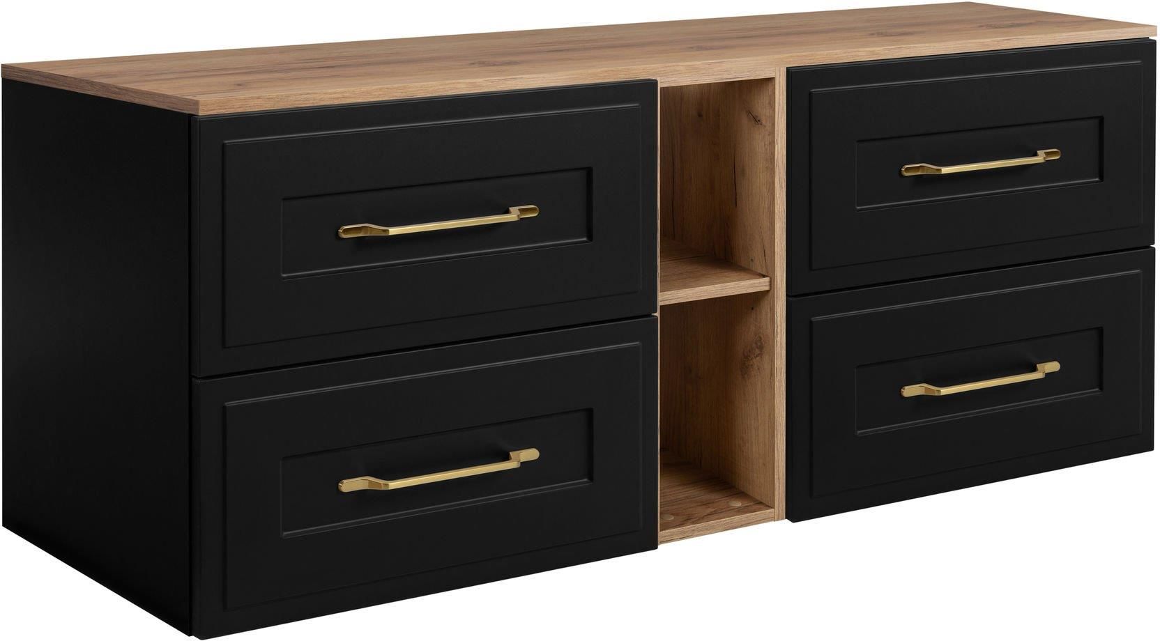 Rodan Zestaw Mebli Łazienkowych Classic Z Szafkami Podumywalkowymi 80Cm Czarny Szafką Otwartą Blatem 180Cm Dąb Mirsk