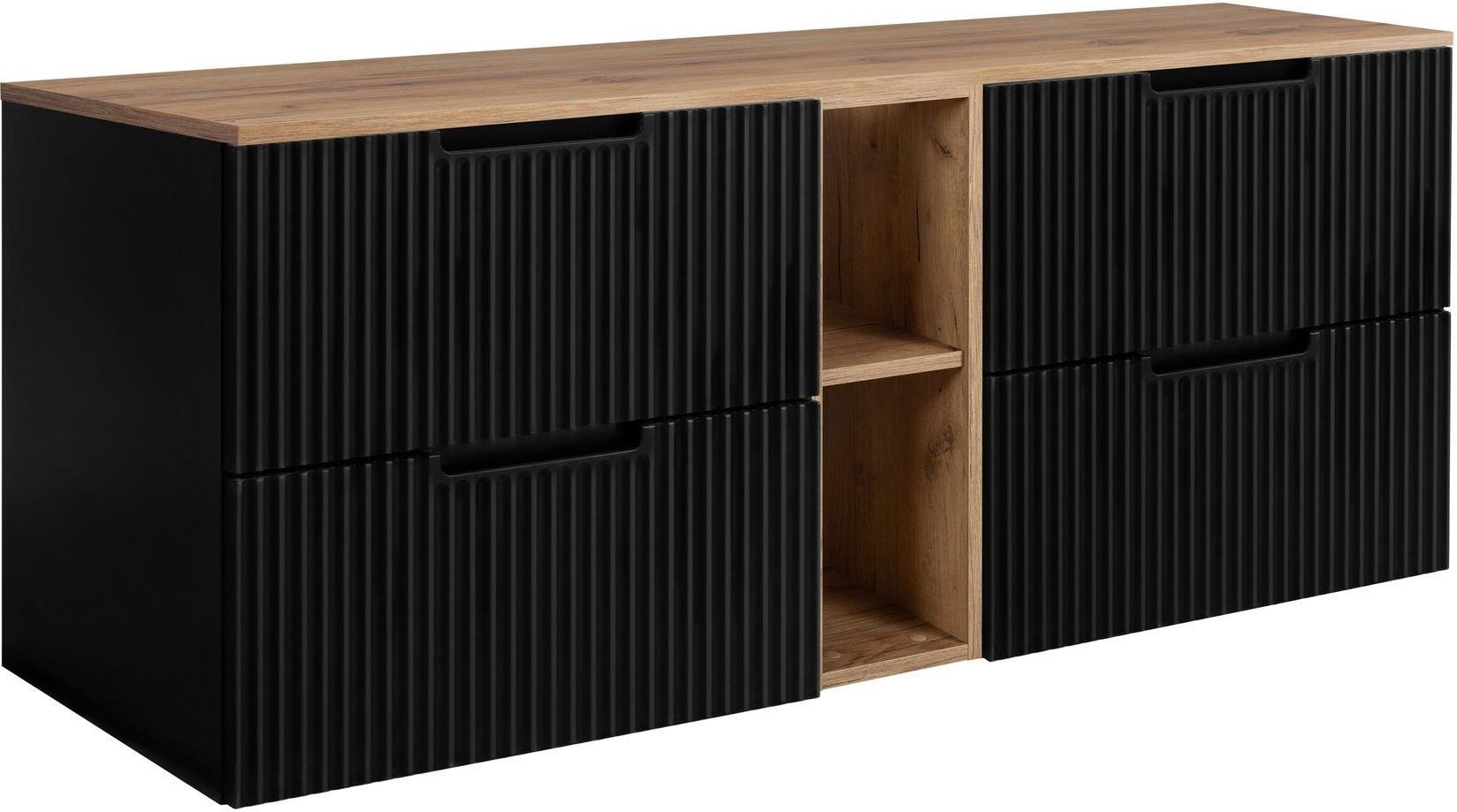 Rodan Zestaw Mebli Łazienkowych Vena Z Szafkami Podumywalkowymi 60Cm Czarny Szafką Otwartą I Blatem 140Cm Dąb Craft Mirsk