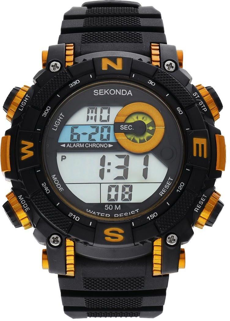 Sekonda 1526 Zegarki to niezwykle istotny element każdej garderoby, który może znacząco wzbogacić indywidualny styl użytkownika. Wśród wielu dostępnych na rynku modeli, szczególną uwagę warto zwrócić na Sekonda 1526. Ten sportowy zegarek unisex doskonale sprawdzi się w różnych sytuacjach, zarówno na co dzień, jak i podczas bardziej wymagających aktywności. Typ zegarka i mechanizm Sekonda 1526 to zegarek cyfrowy, który oferuje nowoczesny sposób odczytu czasu. Dzięki zastosowaniu kwarcowego mechanizmu, zegarek charakteryzuje się wyjątkową precyzją oraz niezawodnością. Mechanizm kwarcowy jest zasilany baterią, co sprawia, że nie musisz martwić się o jego ręczne nakręcanie. Ten typ mechanizmu cieszy się dużą popularnością ze względu na swoją dokładność oraz łatwość obsługi. Materiał koperty i szkiełko Koperta zegarka została wykonana z tworzywa sztucznego, co zapewnia lekkość oraz komfort noszenia. Materiał ten jest również odporny na uszkodzenia mechaniczne, co jest istotne w przypadku zegarków sportowych. Tarcza zegarka jest chroniona przez mineralne szkiełko, które cechuje się dobrą odpornością na zarysowania oraz wysoką przejrzystością. Dzięki temu możesz być pewien, że tarcza będzie czytelna przez długi czas użytkowania. Pasek i wymiary Sekonda 1526 posiada czarny pasek wykonany z gumy, co sprawia, że zegarek doskonale dopasowuje się do nadgarstka i jest wygodny w noszeniu nawet podczas intensywnych aktywności. Szerokość koperty wynosi 50 mm, a jej grubość to 15 mm. Te wymiary nadają zegarkowi wyrazisty wygląd oraz sprawiają, że będzie on dobrze widoczny na nadgarstku. Wodoszczelność i funkcje dodatkowe Sekonda 1526 oferuje wodoszczelność na poziomie 50 metrów, co oznacza, że możesz go nosić podczas pływania czy snorkelingu bez obaw o uszkodzenie mechanizmu. Dodatkowo zegarek posiada wiele funkcji, które zwiększają jego praktyczność: wodoszczelność do 50 metrów, cyfrowy wyświetlacz, gumowy pasek dla większego komfortu, mechanizm kwarcowy zapewniający precyzję, tworzywo sztuczne zabezpieczające kopertę. Zegarek jest również wolny od niklu, co jest istotne dla osób z alergiami skórnymi. Styl i design Sekonda 1526 to model o sportowym charakterze, który doskonale wpisuje się w aktywny styl życia. Czarna kolorystyka paska oraz koperty nadaje mu uniwersalnego wyglądu, który będzie pasować do wielu różnych stylizacji. Okrągła koperta oraz cyfrowy wyświetlacz podkreślają nowoczesny design zegarka. Podsumowanie Sekonda 1526 to doskonały wybór dla osób poszukujących funkcjonalnego i stylowego zegarka sportowego. Dzięki swoim licznym zaletom, takim jak precyzyjny mechanizm kwarcowy, wytrzymałe materiały oraz wysoka wodoszczelność, ten model spełni oczekiwania nawet najbardziej wymagających użytkowników. Niezależnie od tego, czy potrzebujesz zegarka do codziennego noszenia czy do bardziej intensywnych aktywności sportowych, Sekonda 1526 będzie idealnym wyborem.