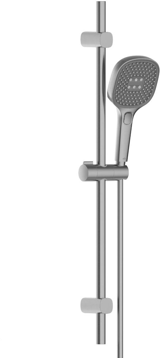Natrysk przesuwny Malaga, gun metal grey PVD Design wysokich lotów Malaga łączy piękno z troską o środowisko. Wyrazista forma o prostych liniach i subtelnych załamaniach nadaje baterii minimalistyczny charakter, stanowiąc doskonałe dopełnienie współczesnych łazienek. Dominujące zaokrąglenia prostokątnych kształtów przewijają się spójnie przez wszystkie elementy każdego modelu. Powłoki są trwałe dzięki technologii PVD oraz galwanizacji, a zastosowanie oszczędnościowych napowietrzaczy redukuje zużycie wody nawet o 50%. Bez kompromisów: powłoka odporna i ekologiczna Technologia PVD to połączenie estetyki i ekologii – pozwala uzyskać głęboki, trwały kolor bez użycia szkodliwych chemikaliów. Metaliczna warstwa nanoszona w próżni tworzy niezwykle odporną powierzchnię, która skutecznie zabezpiecza przed ścieraniem i korozją. Dane techniczne Kolor: gun metal grey PVD Montaż: ścienny Materiał: mosiądz + tworzywo ABS Przepływ wody [l/min]: 11 Ilość strumieni rączki natrysku: 3 Długość węża [mm]: 1500 Materiał węża: PVC Opakowanie zawiera Drążek natrysku, uchwyty ścienne ‒ 2 szt. (w tym 1 uchwyt z możliwością dostosowania położenia do starych otworów), zestaw montażowy (2 wkręty z kołkami ściennymi), rączka natrysku z uchwytem, wąż PVC (L=1500 mm) Certyfikaty i deklaracje Produkt wykonany zgodnie z normą PE-EN 1112:0218, posiada znak budowlany, Atest higieniczny, Krajowa deklaracja właściwości użytkowych
