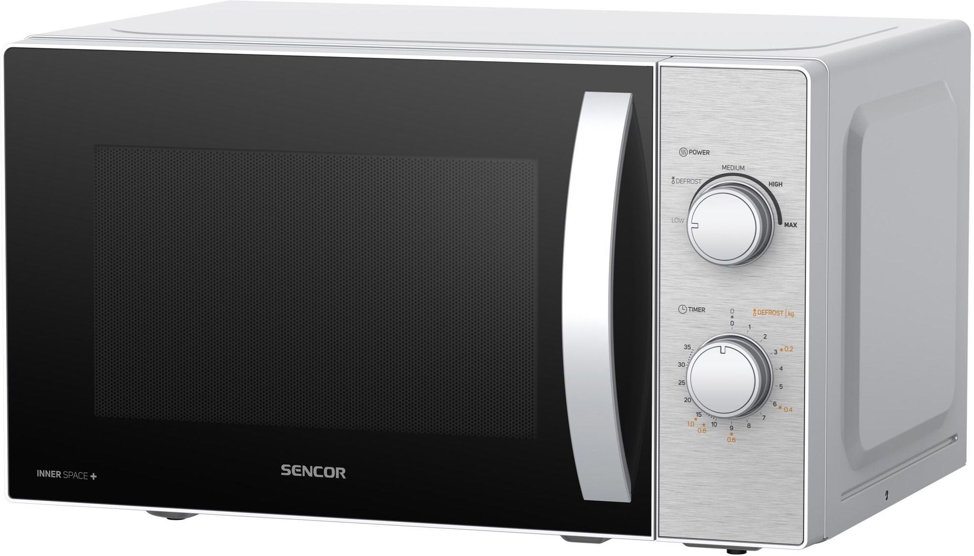 KUCHENKA MIKROFALOWA SMW 2120SS Średnica talerza obrotowego 255 mm Wymiary (sz‌ × w × gł): 440 × 259 × 364 mm Masa: 10 kg GŁÓWNE CECHY Cechy: Podgrzewanie za pomocą mikrofal do szybkiego podgrzewania i gotowania Ponadczasowa konstrukcja ze stali nierdzewnej, bez śladów rdzy lub utraty atrakcyjnego wyglądu Trwałe wnętrze pokryte emalią umożliwiające łatwe czyszczenie Prostą obsługę ręczną zapewniają tylko dwa pokrętła Duża przestrzeń wewnętrzna: można użyć jeszcze większych misek nawet do 25,5 cm Pojemność 20 l 5 poziomów mocy mikrofal zaspokoi wszystkie twoje wymagania Funkcja szybkiego i higienicznego rozmrażania Minutnik 35-minutowy jest dostateczny nawet do gotowania Moc mikrofal 700 W Sygnał dźwiękowy oznajmujący zakończenie programu Uchwyt do otwierania drzwi Średnica talerza obrotowego: 255 mm Wymiary (sz‌ × w × gł): 440 × 259 × 364 mm Masa: 10 kg DANE TECHNICZNE Typ kuch. mikrofalowej:  Podstawowa Pojemność: 20 l Moc mikrofal (W): 700 W Obsługa: Mechaniczne Średnica talerza: 25,5 cm Powierzchnia wewnętrzna: Emalia Wysokość (cm): 25,9 cm Szerokość (cm): 44 cm Głębokość (cm): 36,4 cm Kolor: Szary Waga: 10 kg Wyświetlacz: Nie Otwieranie drzwi: Lewe