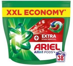 Ariel Allin1 PODS Dodatkowa Moc Usuwania Plam, Kapsułki do prania, 38 prań Ariel Allin1 PODS Dodatkowa Moc Usuwania Plam, Kapsułki do prania, 38 prań (38x24,5g) Ariel, marka rekomendowana przez Whirlpool, Electrolux, Candy i Beko, przedstawia kapsułki do prania ze środkiem piorącym w płynie Ariel …