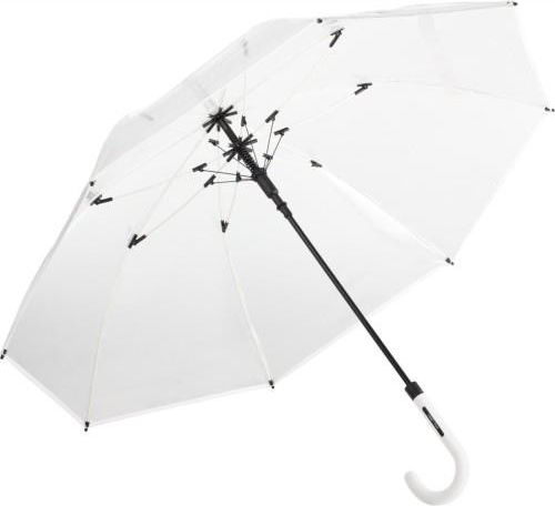 Świetny przezroczysty parasol automatyczny z wykończeniem detali w kolorze białym - rączka, szpic, stelaż i pasek spinający. Parasol posiada wygodny automatyczny mechanizm rozkładania oraz zagiętą rączkę typu soft-touch. Modny nowoczesny wygląd parasola sprawi, że będzie on pasował do każdej stylizacji. Czasza jest przezroczysta, dzięki czemu nie ogranicza widoczności otoczenia dla użytkownika, co jest ważne zwłaszcza wtedy, gdy chodzi się ruchliwymi ulicami miast.