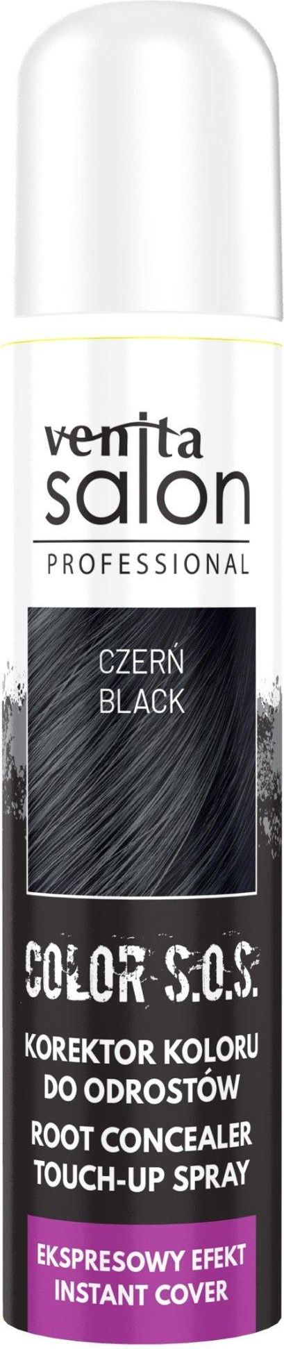 VENITA COLOR S.O.S. CZERŃ 75ML KOREKTOR ODROSTÓW COLOR SOS – NATYCHMIASTOWE POKRYCIE ODROSTÓW I SIWYCH WŁOSÓW • Korektor koloru błyskawicznie retuszuje niechciane odrosty • Zapewnia odświeżenie koloru i naturalne wykończenie fryzury w kilka sekund • Kolor utrzymuje się do pierwszego mycia włosów …