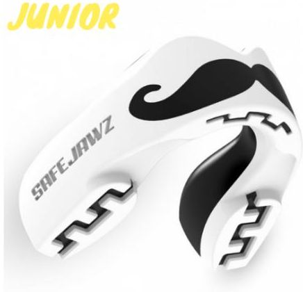 Ochraniacz szczęki marki Safe Jawz. Kolor: biało-czarny Materiał: silikon Przeznaczony dla osób do 11 roku życia. Konstrukcje ochraniaczy szczęk Safe Jawz i materiały z których są wykonane umożliwiają użytkownikowi bardzo dokładne dopasowanie ochraniaczy do uzębienia w czasie krótszym niż 10 minut, a także umożliwiają wielokrotną korektę dopasowania , nieporównywalną do zwykłych ochraniaczy szczęk ich ochronę a przy tym są bardzo efektowne wizualnie. Zawodnicy oraz fani lubią się wyróżniać i chętnie wybierają te szczęki do noszenia. Ochraniacze szczęk Safe Jawz składają się z podwójnych warstw ochronnych zespolonych ze sobą i doskonale pochłaniających energię uderzenia , posiadają 3 opatentowane systemy FluidFit , JawSecure i RemodelTech. Pierwszy system dzięki płynnemu składnikowi materiału służy bardzo dokładnemu uformowaniu się ochraniacza i dopasowaniu go do uzębienia, drugi zapewnia lepsze pochłonięcie energii poprzez specjalnie zaprojektowane zaciski między dwoma warstwami ochraniacza a trzeci umożliwia użytkownikowi ponowne umodelowanie ochraniacza jeśli przy jego formowaniu niedokładnie dokonał zgryzu i istnieje konieczność poprawienia modelingu ochraniacza. Ochraniacze Safe Jawz są zapakowane w indywidualne i estetyczne etui. OCHRANIACZ SZCZĘKI MARKI SAFE JAWZ Z ETYKIETĄ POTWIERDZAJĄCĄ 100% ORYGINALNOŚCI