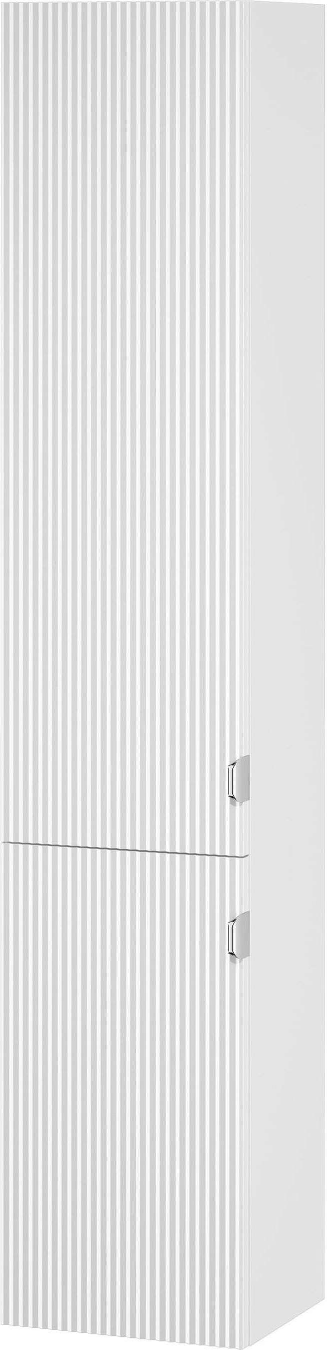 Słupek łazienkowy Senti Costano 30x150x25 cm biały mat to propozycja utrzymana w stylu nowoczesnym, która wnosi do wnętrza wizualną lekkość, harmonię oraz szyk. Mebel łazienkowy biały charakteryzuje się neutralną i przejrzystą kolorystyką, która rozjaśnia przestrzeń. Model o matowym wykończeniu powierzchni wyróżnia się ryflowanym frontem. Pionowe, symetryczne i wąskie płyciny podkreślają lekkość produktu, a jednocześnie stanowią nieszablonową dekorację zgodną z aktualnymi trendami. Podwójne drzwi uchylne wspiera system cichego domknięcia, gwarantując komfort użytkowania. Przestrzeń wewnętrzną produktu wypełnia pięć półek. Kolekcja mebli łazienkowych Senti wykonana została z niezawodnej płyty MDF oraz płyty wiórowej. Łatwa w pielęgnacji powierzchnia słupka łazienkowego jest również wysoce odporna na zarysowania oraz pozostałe uszkodzenia mechaniczne. Wymiary prezentowanego modelu sięgają 30 cm szerokości, 150 cm wysokości oraz 25 cm głębokości. W sklepie Komfort dostępne są także akcesoria do mebli łazienkowych Senti, w tym nóżki oraz uchwyty w różnych wariantach kolorystycznych, które zapewnią słupkom z serii Costano praktyczne i stylowe wykończenie.