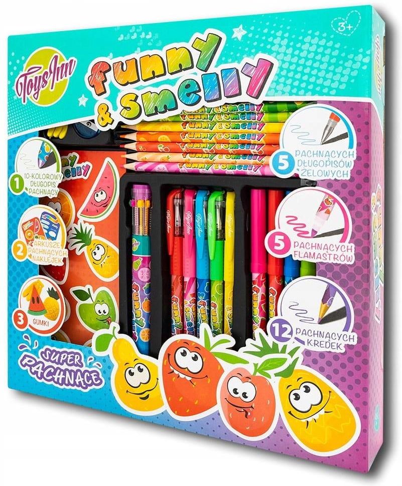 DUŻY ZESTAW PLASTYCZNY DO KOLOROWANIA pachnące długopisy kredki mazaki CO WYRÓŻNIA NASZ PRODUKT 1✔️Pachnące przybory do pisania, kolorowania i tworzenia naklejek, stymulujące zmysł węchu oraz kreatywność dziecka. Bogaty zestaw zawierający różnorodne przybory artystyczne, takie jak długopisy żelowe, …