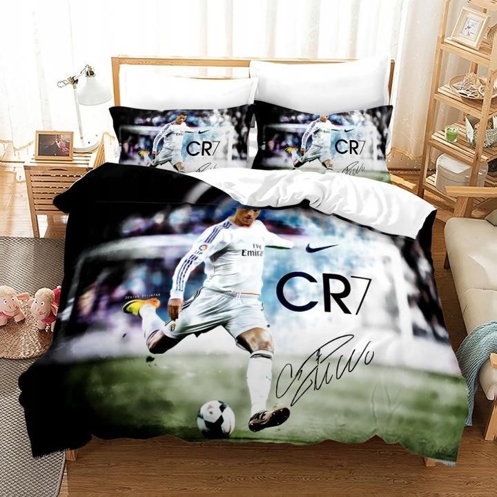 KOMPLET POŚCIELI Cristiano Ronaldo 160x200 3CZ Materiał: Pościel wykonana w 100% ze szczotkowanej mikrofibry, zastosuj przyjazną dla środowiska technologię druku, wysoka trwałość kolorów, miękka, oddychająca i wygodna, zapewnia niewiarygodnie przyjemne uczucie na skórze. Design: Nadruki na pościeli …