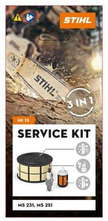 STIHL Zestaw serwisowy nr 15 do MS 231, 251, A1143 007 4100 Charakterystyka produktu: Zestaw serwisowy nr 6 umożliwia samodzielną wymianę podstawowych części eksploatacyjnych w pilarkach spalinowych STIHL MS 231, MS251. Regularna wymiana części eksploatacyjnych zwiększa niezawodność i żywotność urządzenia. W zestawie: filtr powietrza, świeca zapłonowa, filtr paliwa. Do wymiany filtra powietrza i świecy użyj klucza uniwersalnego 19 mm / 13 mm nr kat. 1128903401, a do wymiany filtra paliwa pomocny będzie kartonowy hak zintegrowany z opakowaniem zestawu. Na opakowaniu znajduje się kod QR & link do stron z instruktażem i informacjami o zestawach serwisowych. Dane techniczne: W zestawie: filtr powietrza, świeca zapłonowa, filtr paliwa. Nr katalogowy: A1143 007 4100