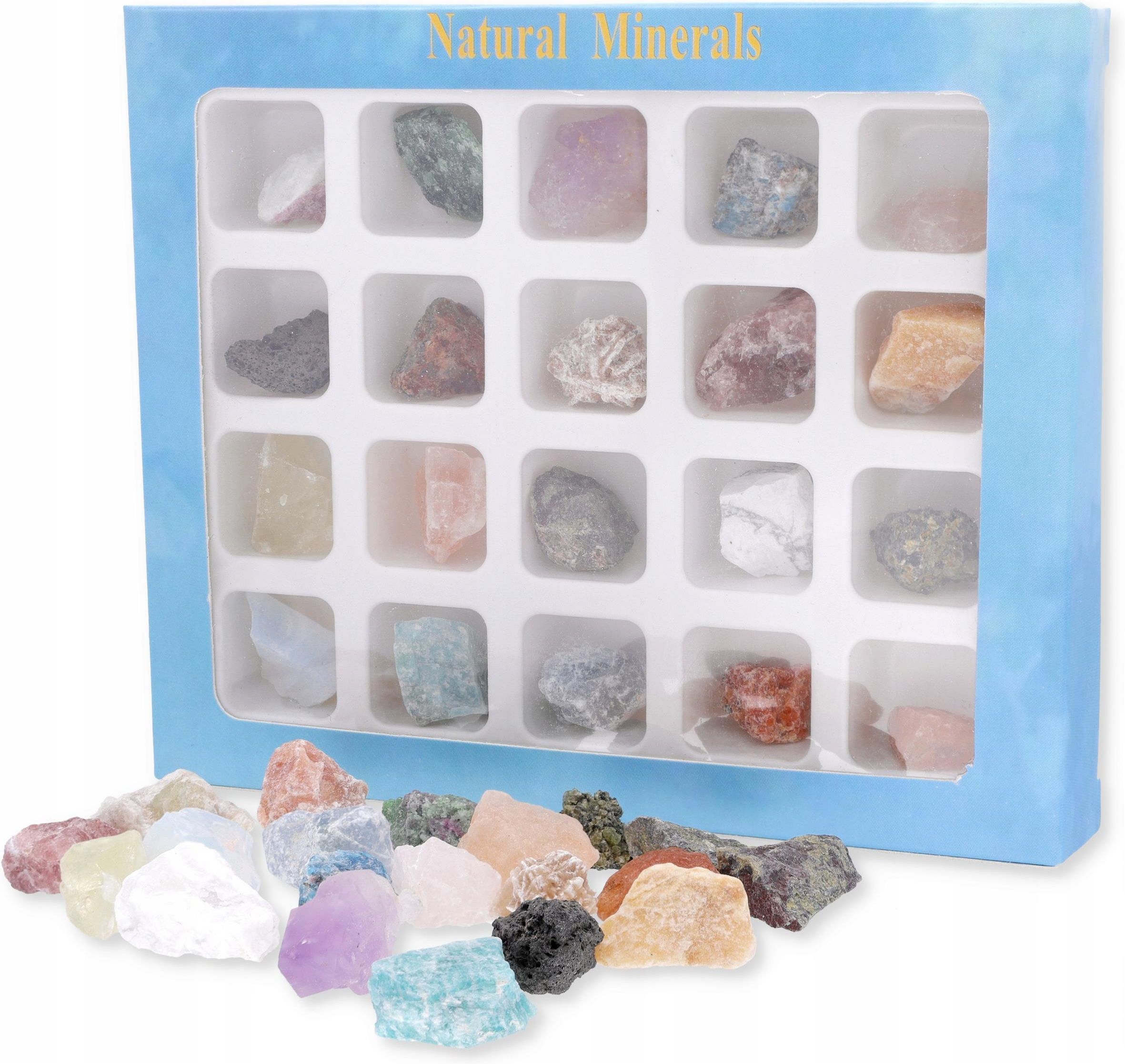 Zestaw Minerałów 20 Kamieni Surowe Kolorowe Kryształy Kolekcja W Pudełku Mogielnica